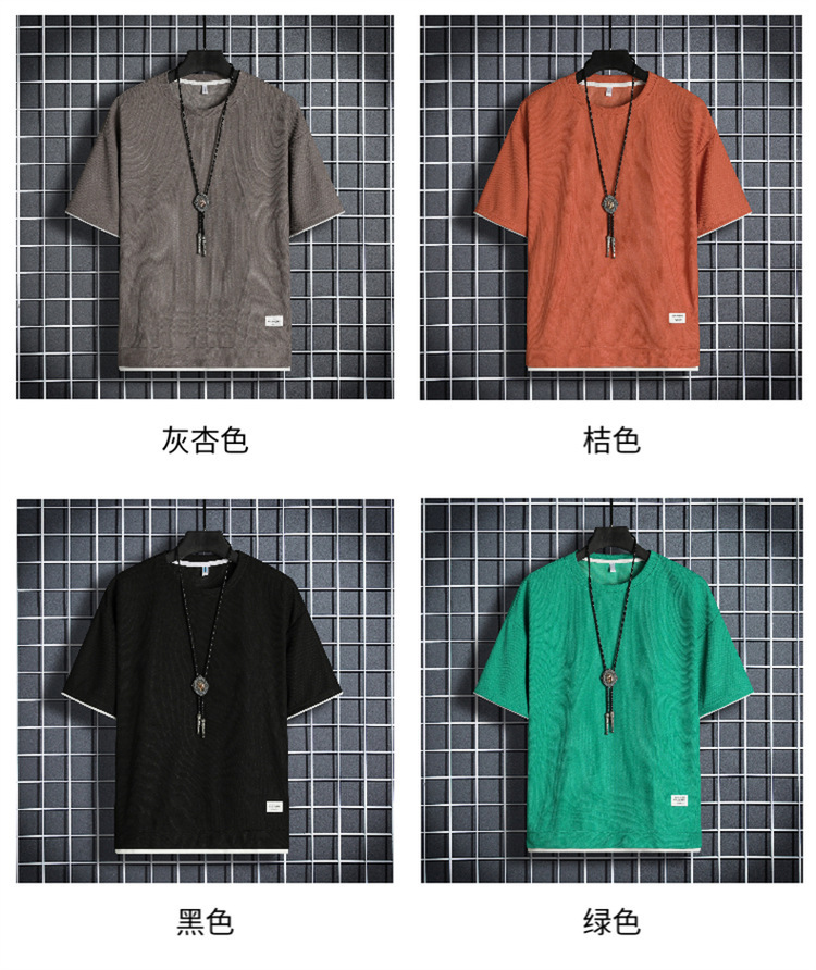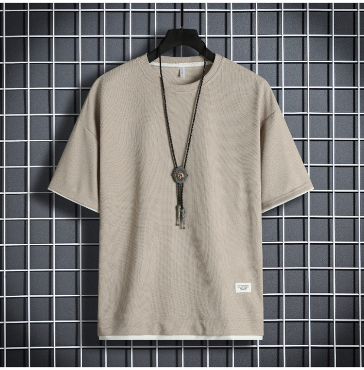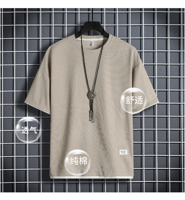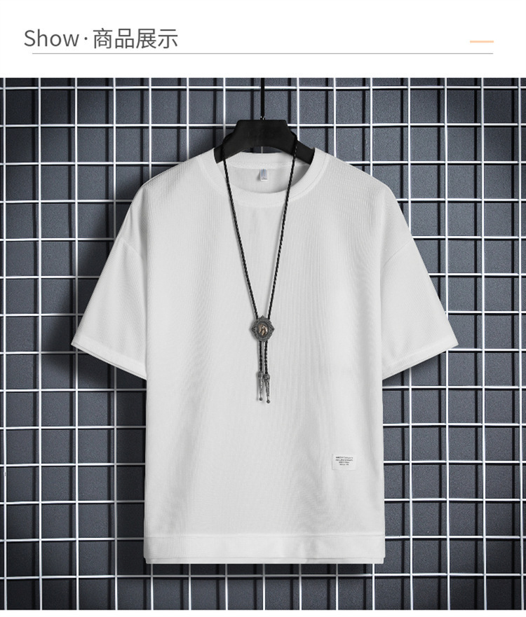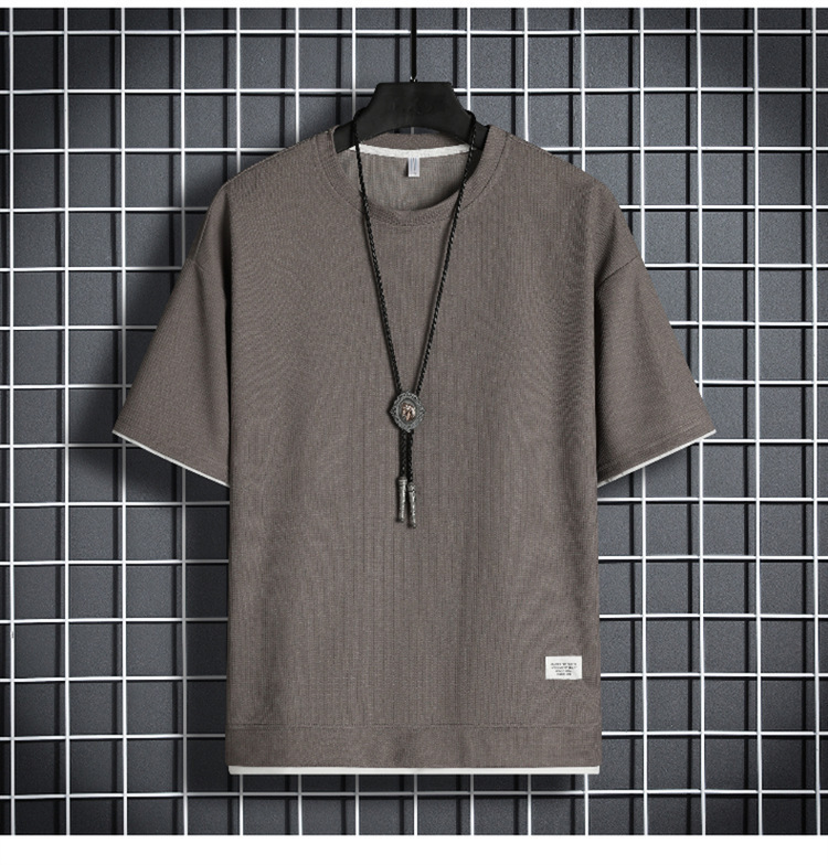 공장 재고 와플 반팔 티셔츠 남성용 여름 얇은 느슨한 올매치 캐주얼 티셔츠 반소매 탑 옷스토어 가기