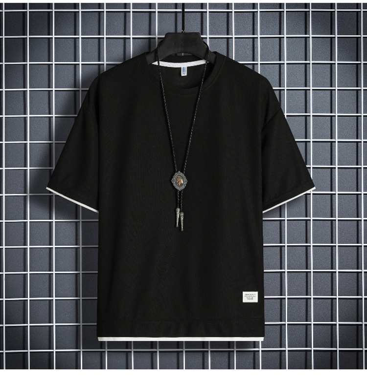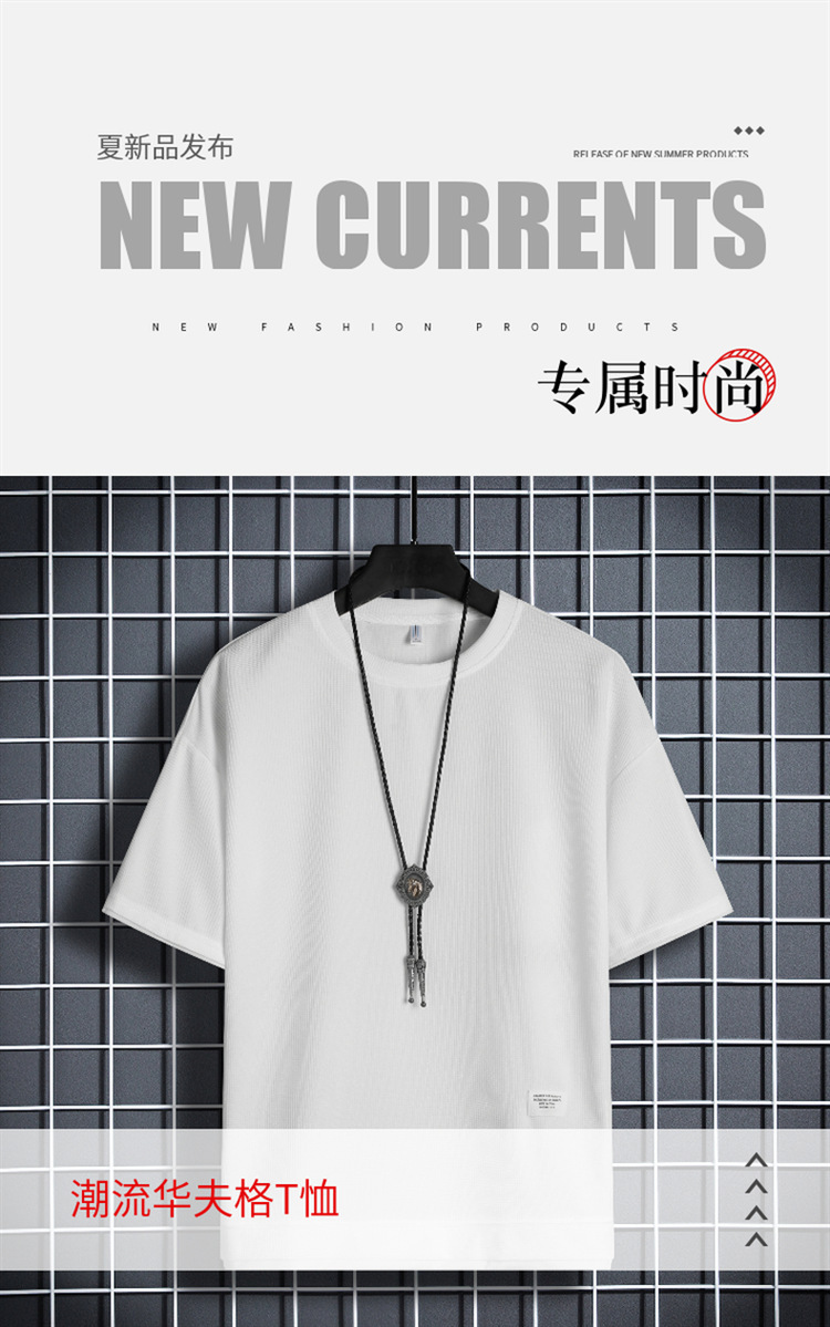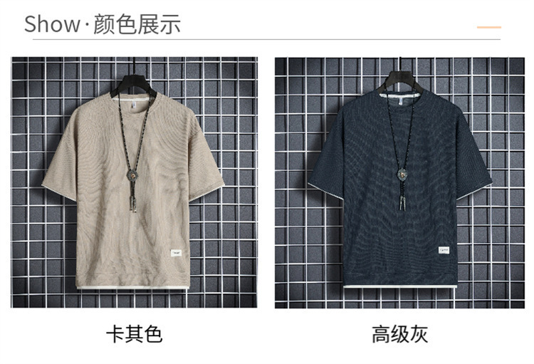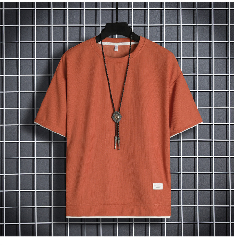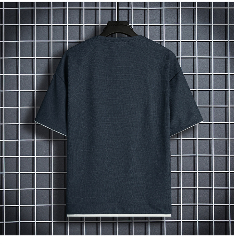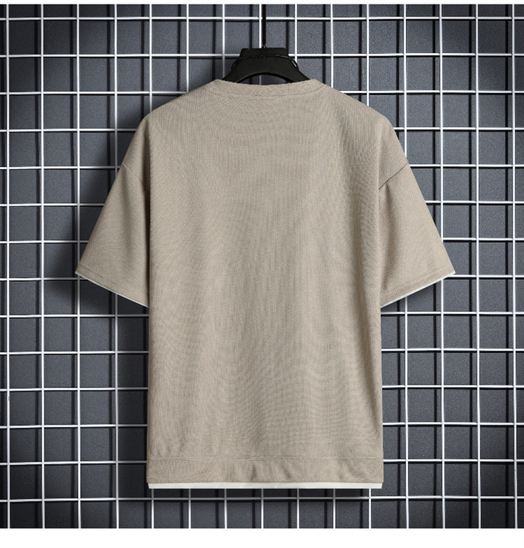 공장 재고 와플 반팔 티셔츠 남성용 여름 얇은 느슨한 올매치 캐주얼 티셔츠 반소매 탑 옷스토어 가기