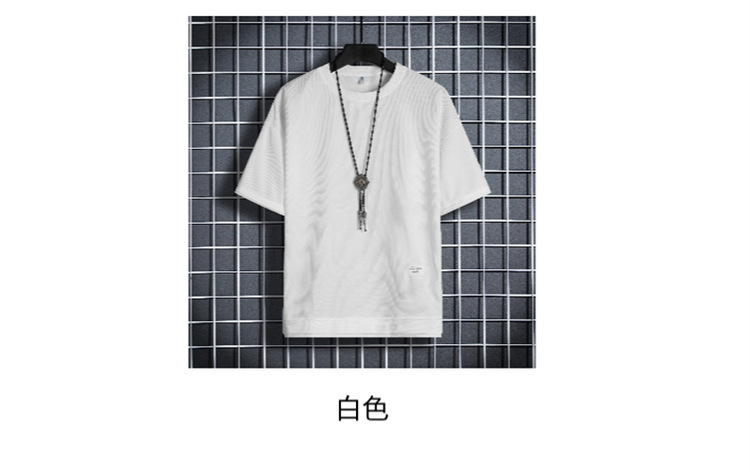 공장 재고 와플 반팔 티셔츠 남성용 여름 얇은 느슨한 올매치 캐주얼 티셔츠 반소매 탑 옷