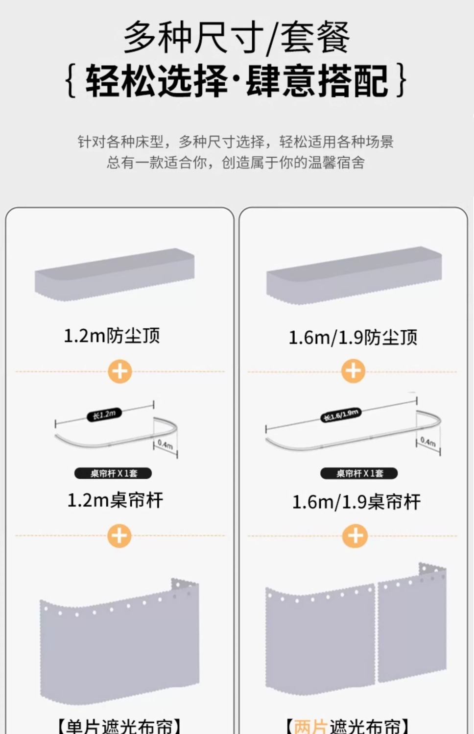 대학생 기숙사 낮은 테이블 차단 커튼 침대 낮은 테이블 개인 정보 보호 공간 커튼 U 자형 트랙 확장 음영 테이블 커튼 천스토어 가기