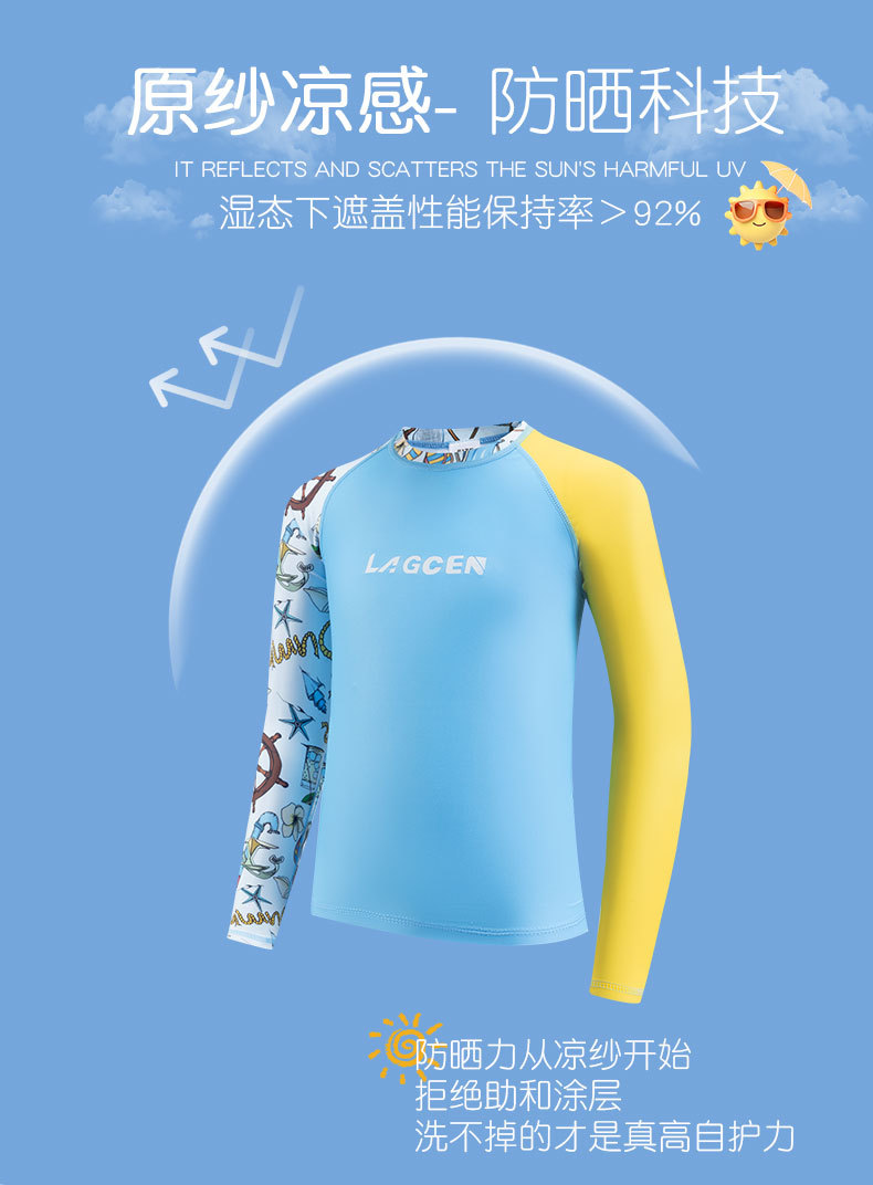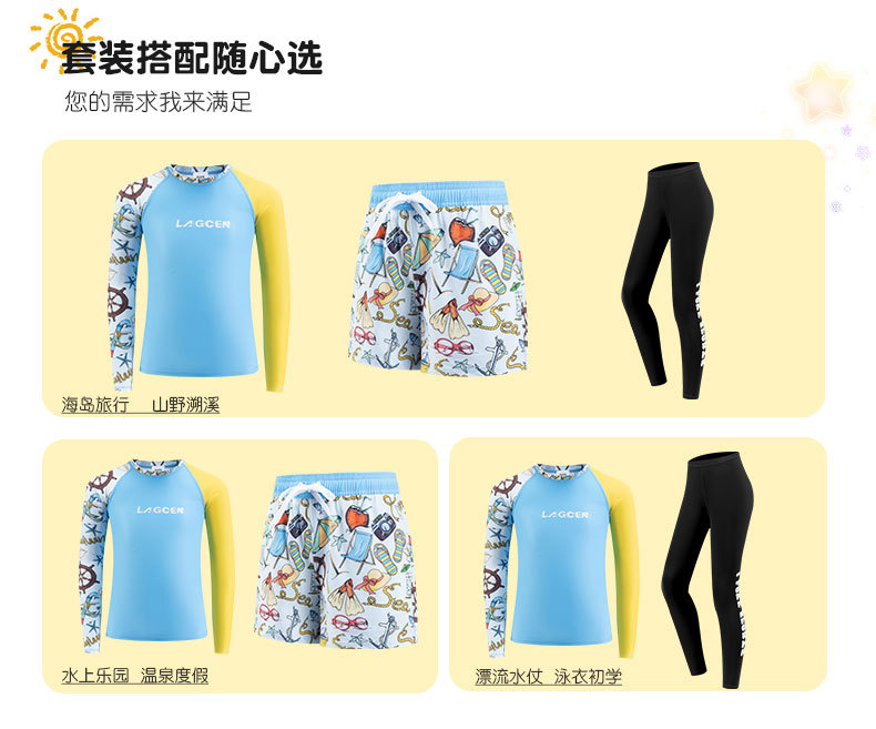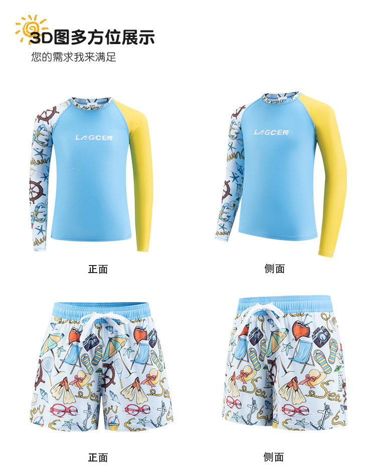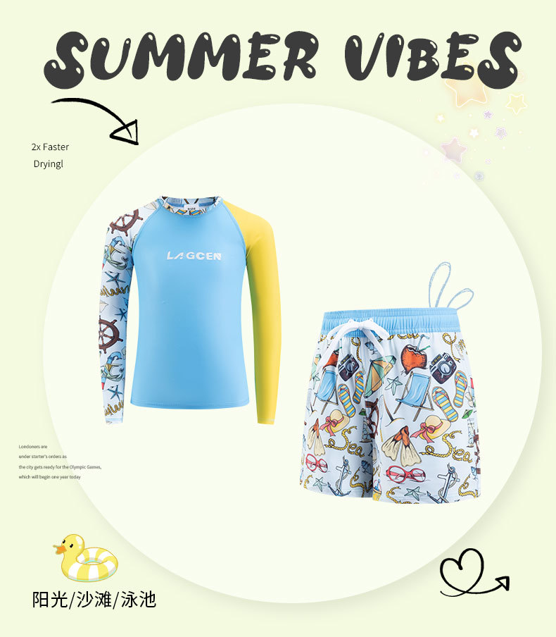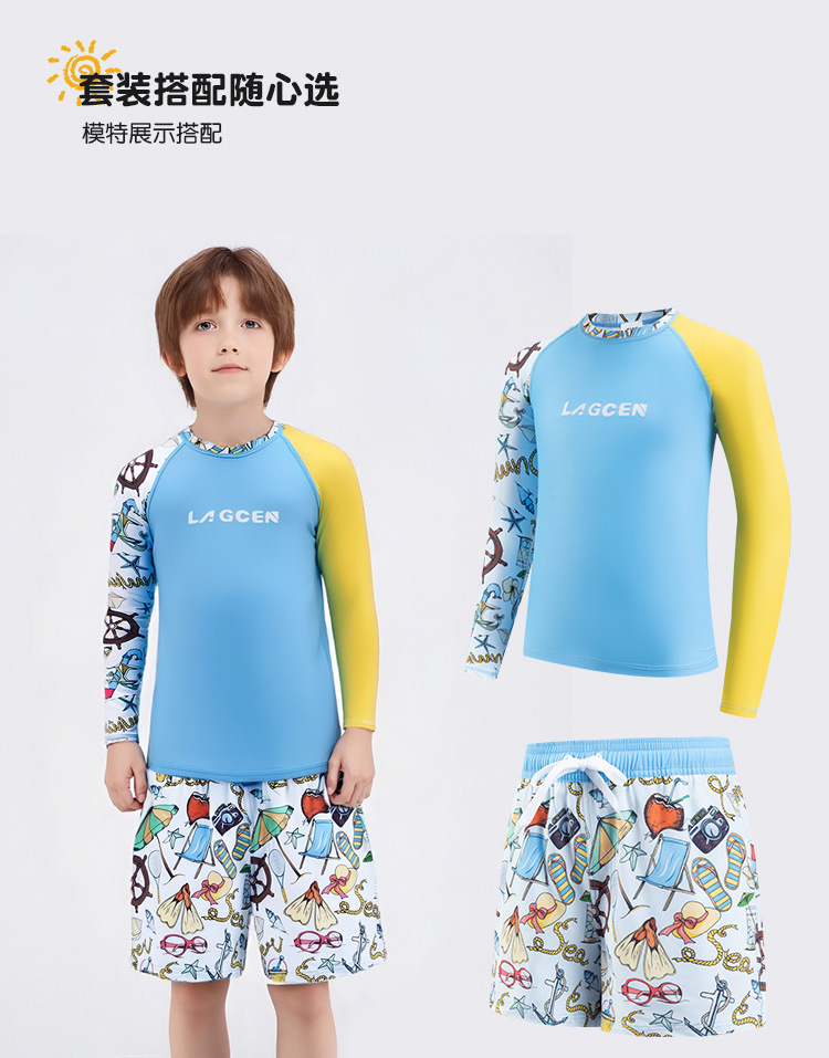 LAGCEN 여름 얇은 어린이 수영복 스플릿 긴팔 바지 자외선 차단 속건성 세트 해변 놀이 해변 바지