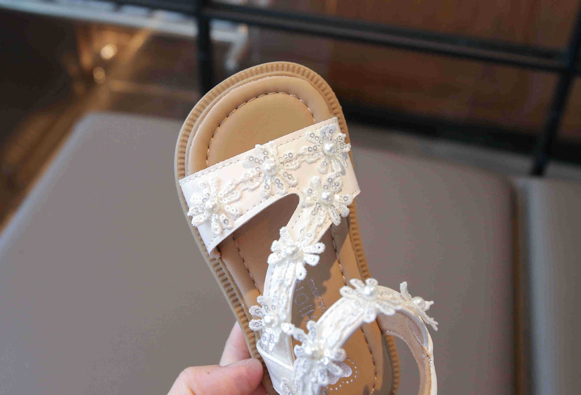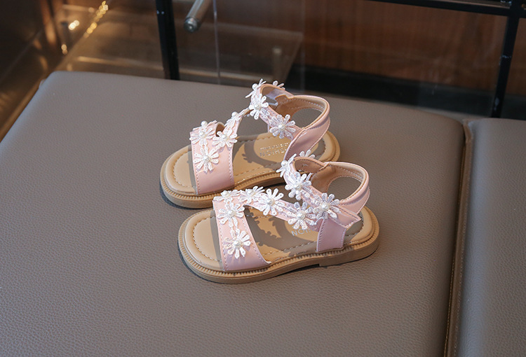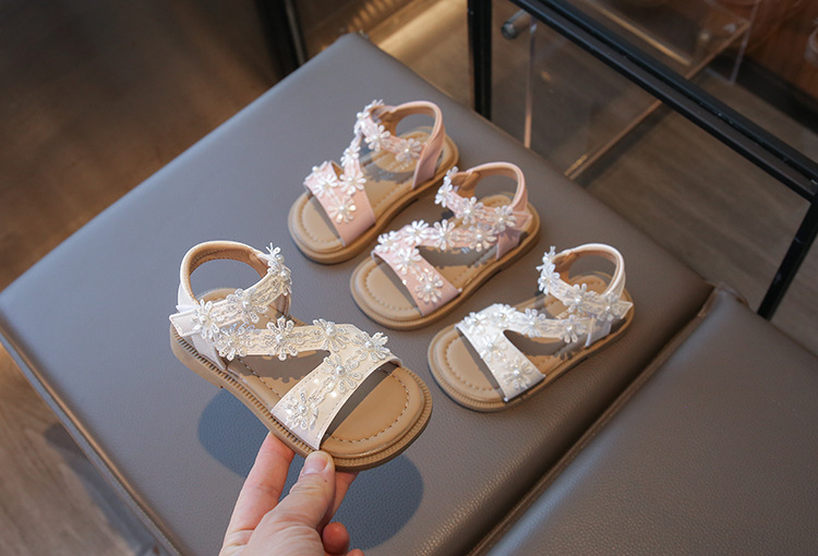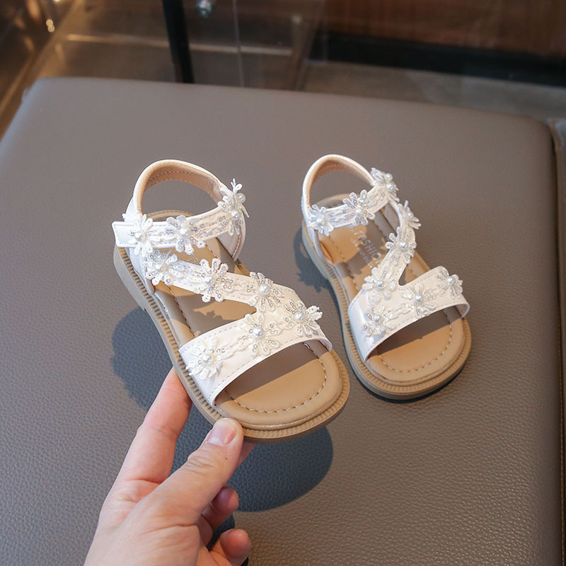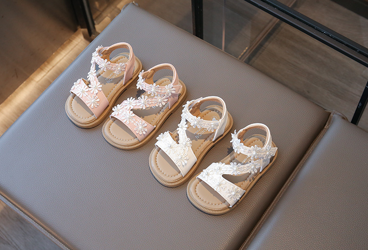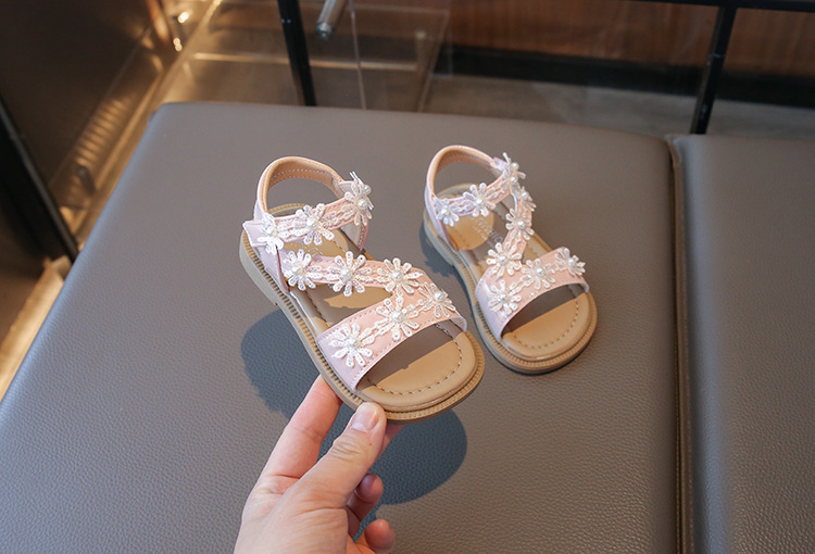 2025 새로운 어린이 소녀 소프트 단독 미끄럼 방지 비치 신발 소녀 샌들 한국식 꽃 올매치 오픈 발가락 공주 신발스토어 가기