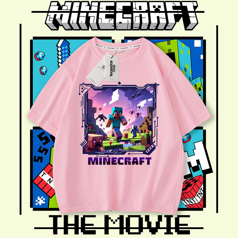 Minecraft Minecraft 공동 브랜드 아동용 반팔 티셔츠 소년용 Creeper 주변 여름 아동복스토어 가기