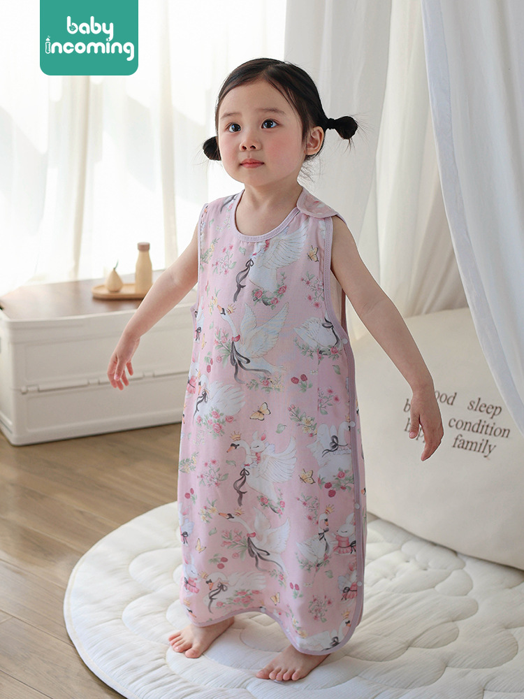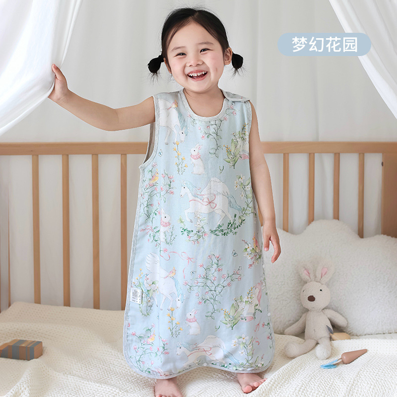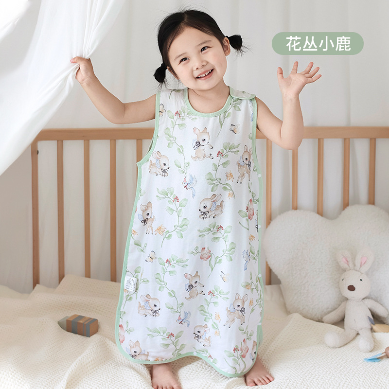 여름 슬리핑 백 아기 얇은 Tianzhu 조끼 파자마 민소매 킥 방지 슬리핑 백 에어컨 룸 벨리 프로텍터스토어 가기