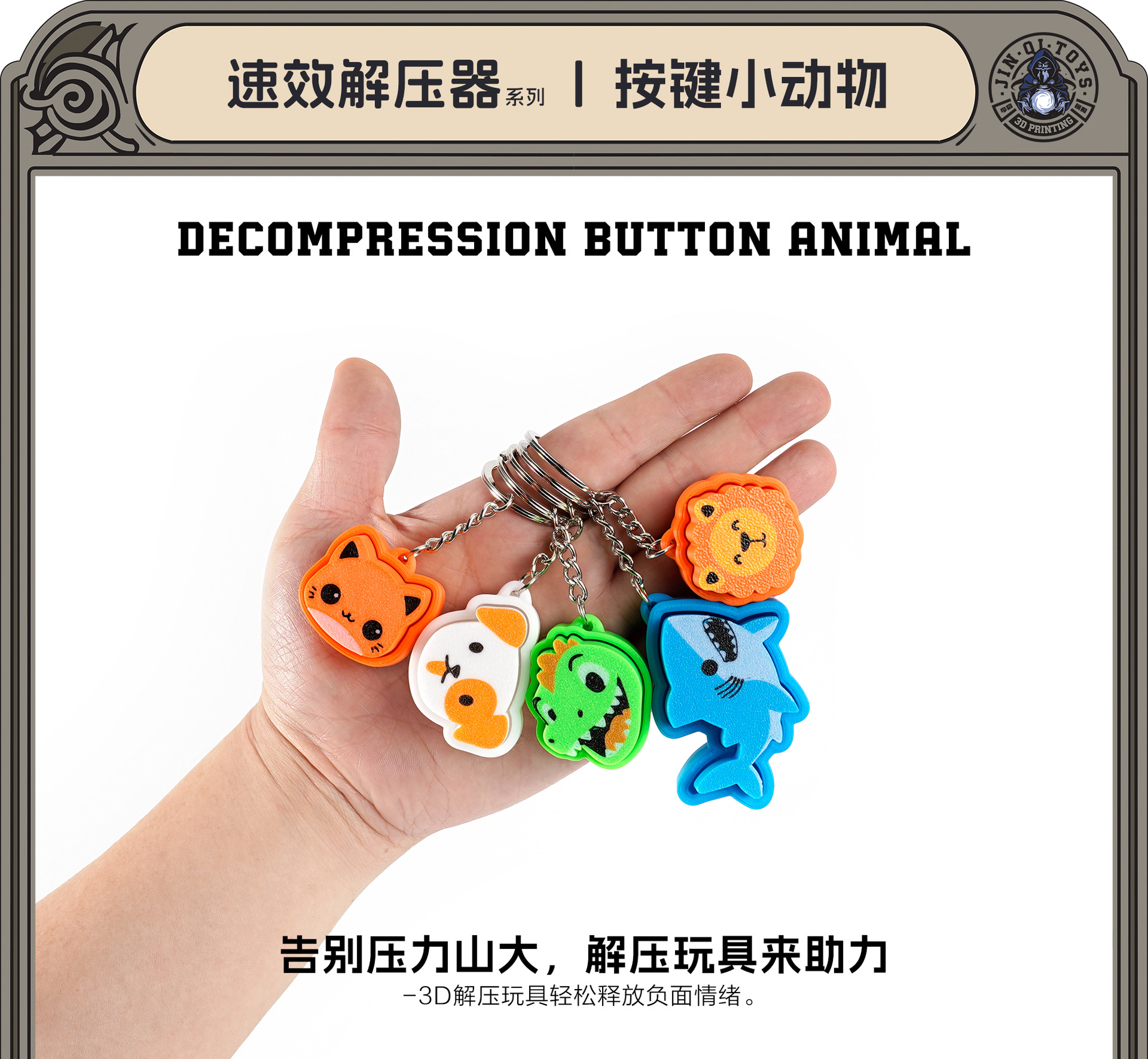 3D 인쇄 국경 키 압축 압축 키 체인 재미있는 조수 놀이 동물 액세서리 공예 작은 장식품 주요 액세서리스토어 가기