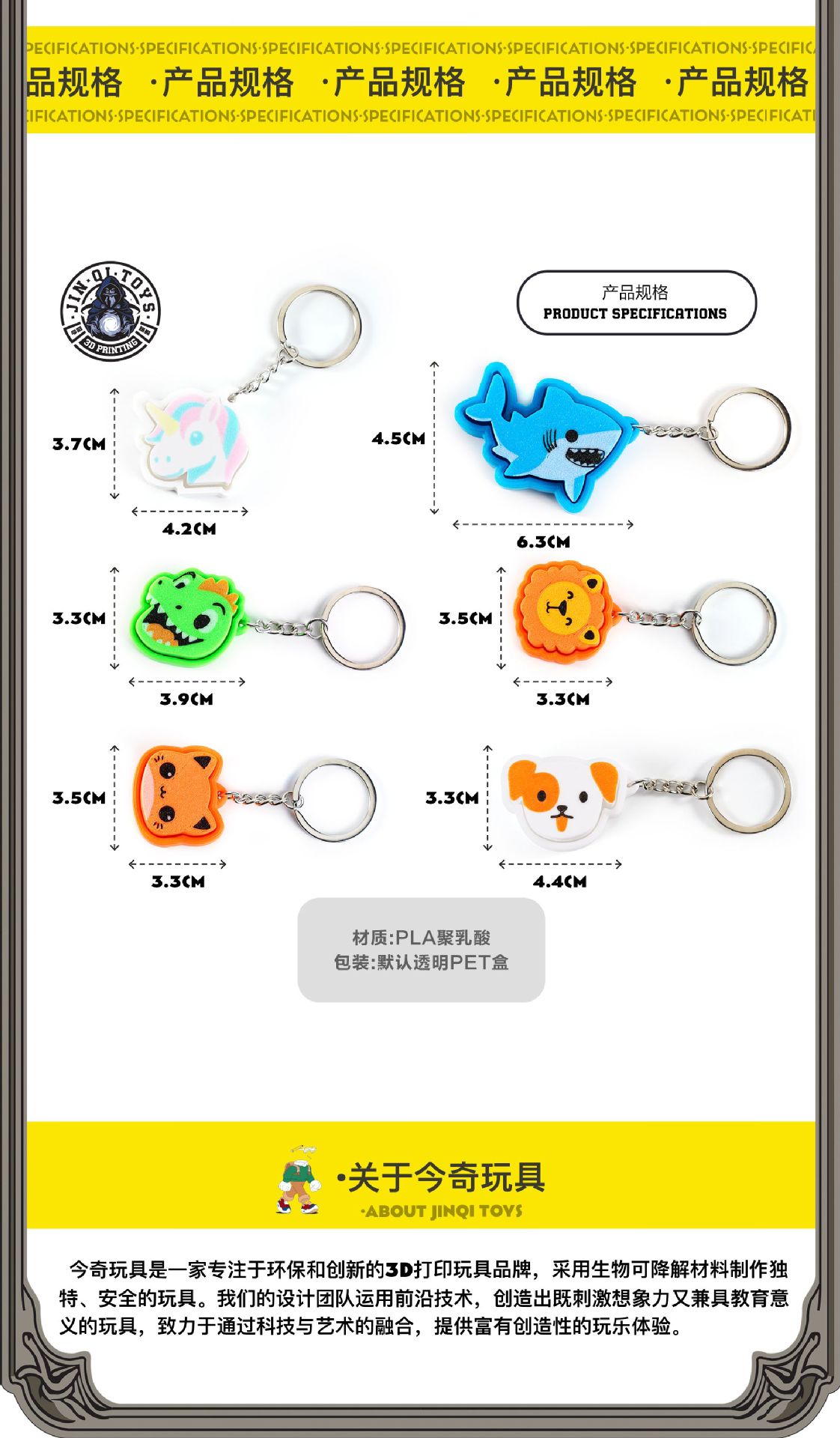 3D 인쇄 국경 키 압축 압축 키 체인 재미있는 조수 놀이 동물 액세서리 공예 작은 장식품 주요 액세서리