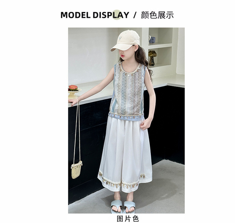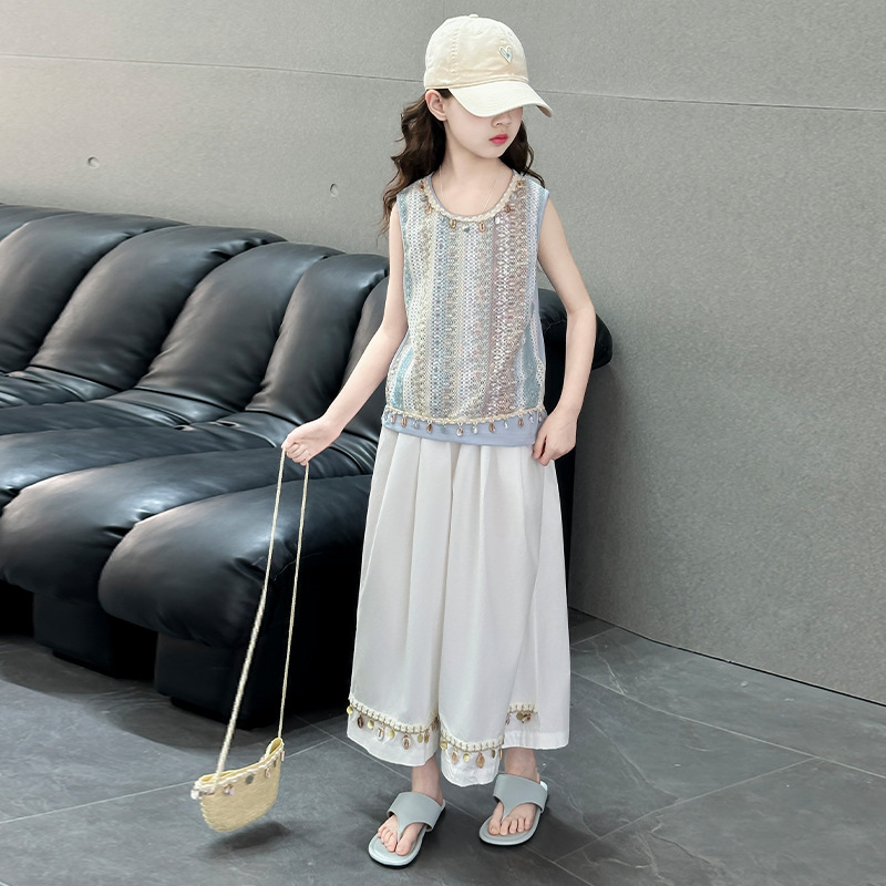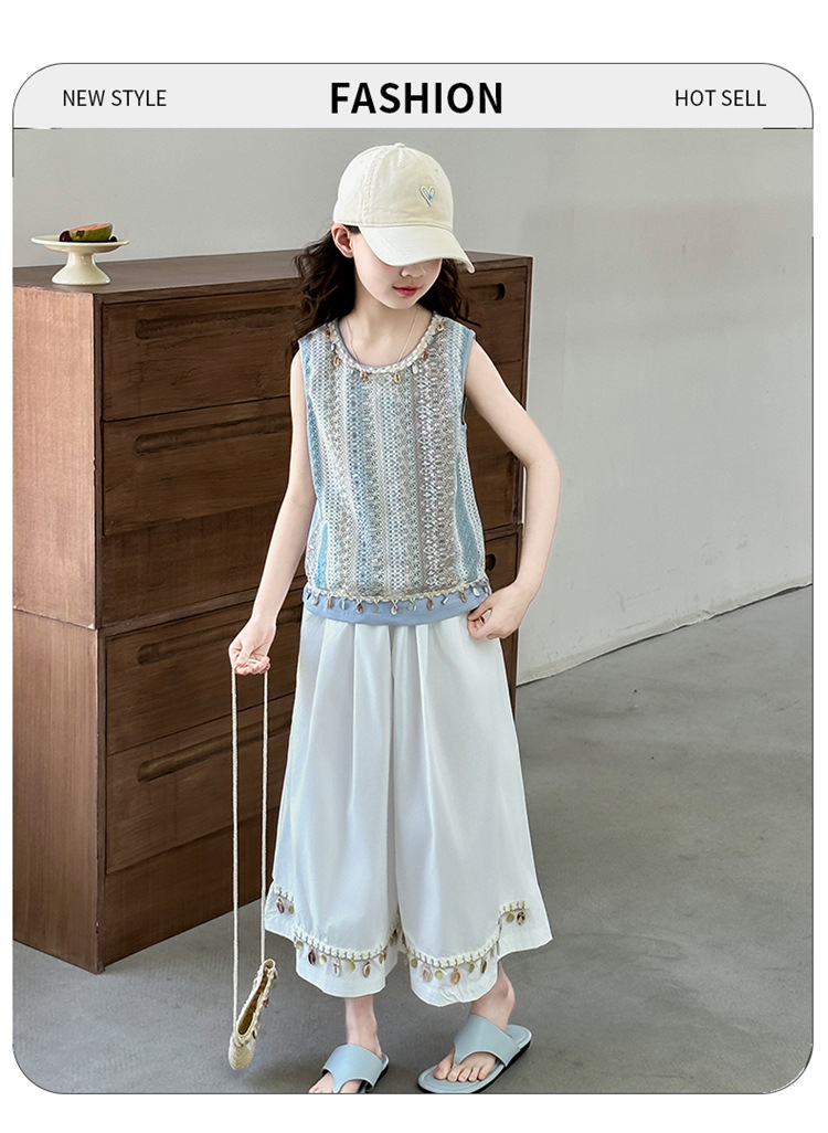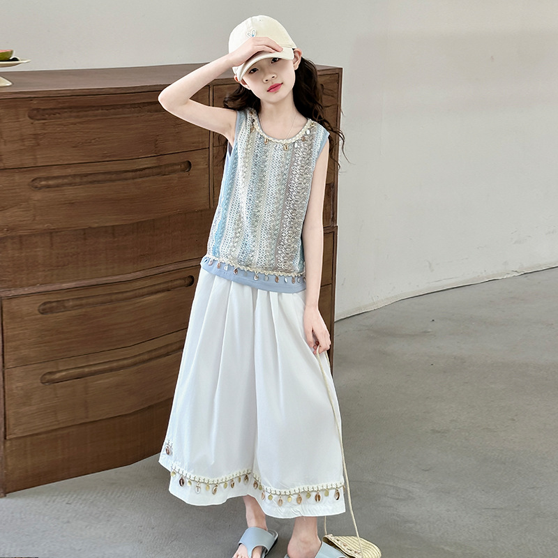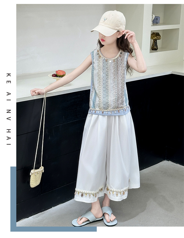 여자 여름 민소매 세트 2025 새로운 여자 보헤미안 착용 어린이 여름 캐주얼 투피스 세트