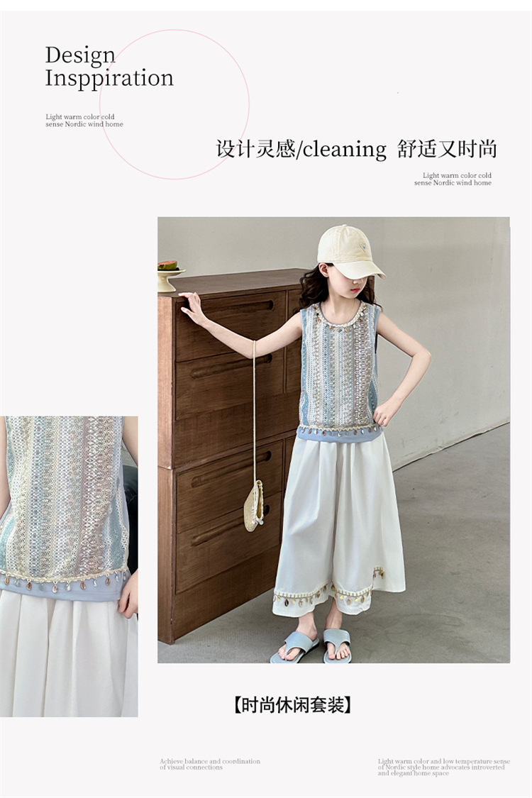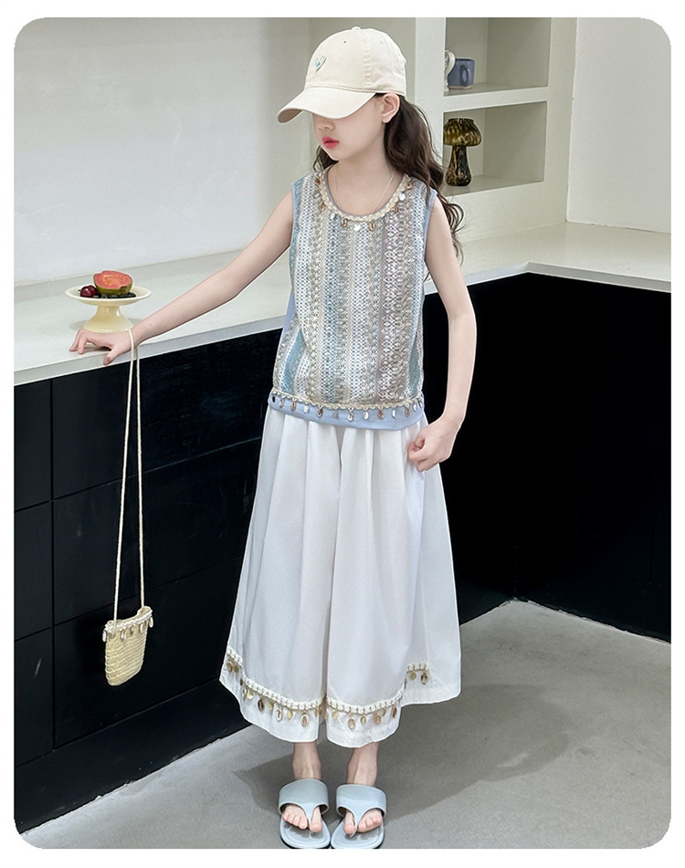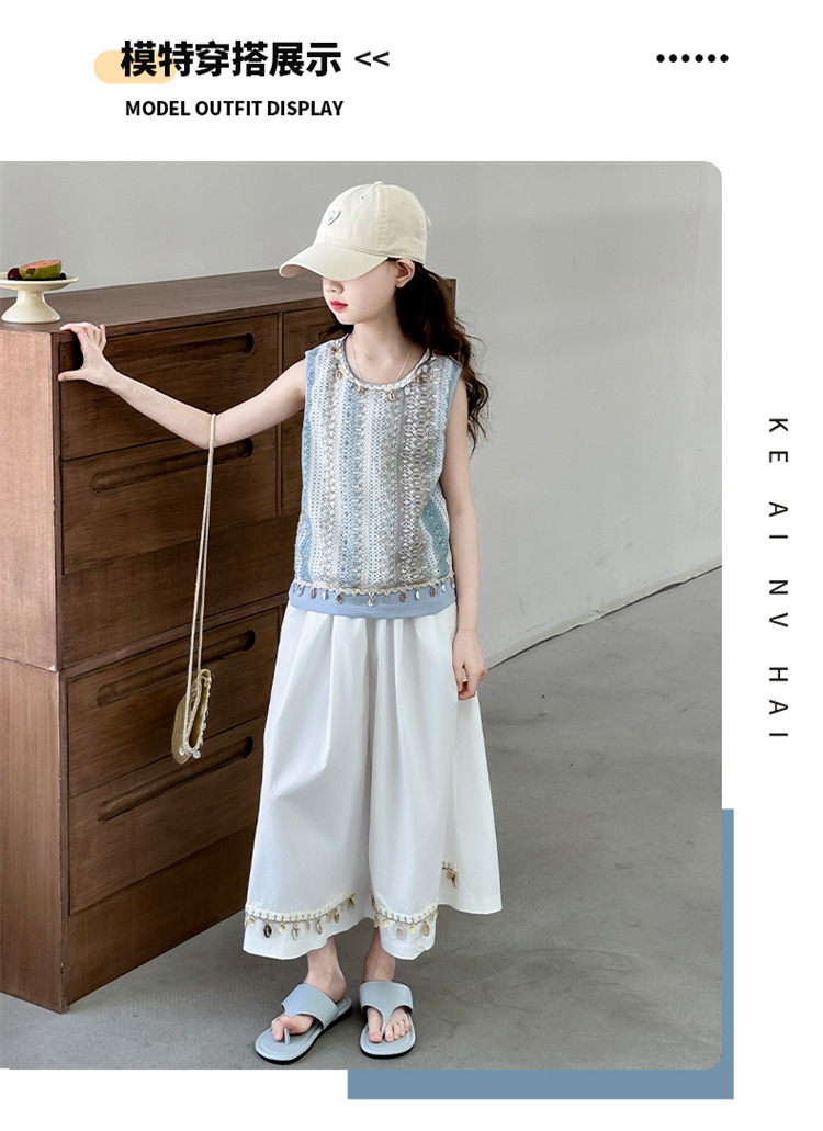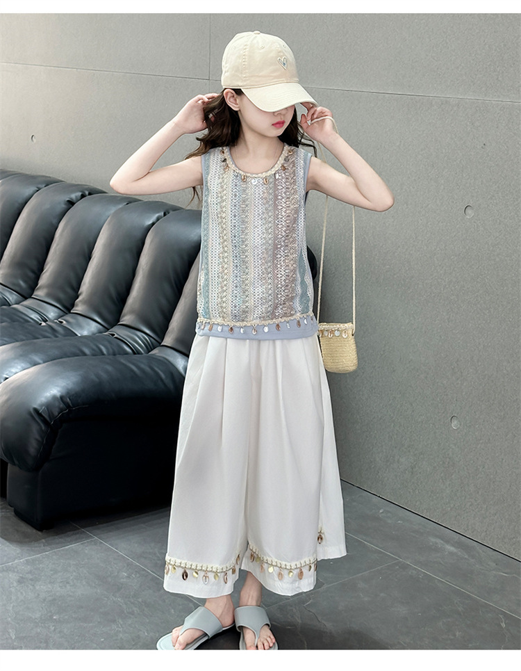 여자 여름 민소매 세트 2025 새로운 여자 보헤미안 착용 어린이 여름 캐주얼 투피스 세트