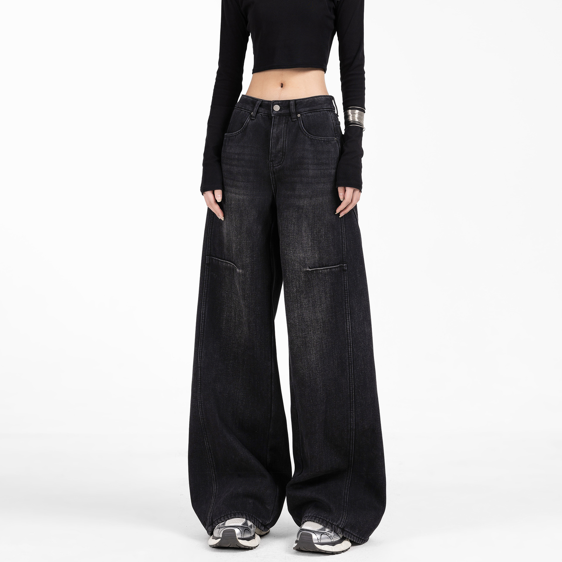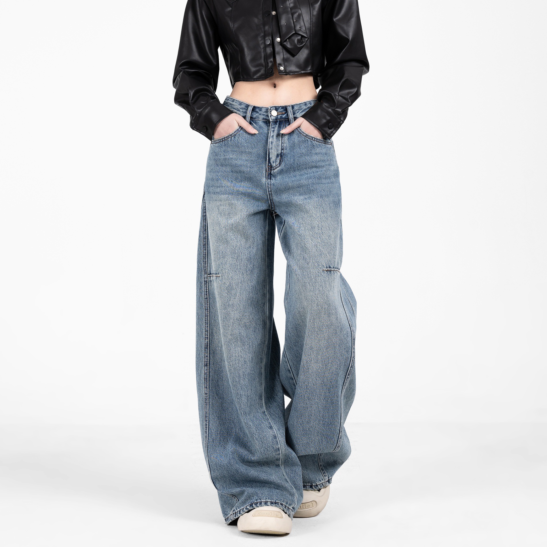 American Vintage Scimitar Wide Leg Jeans 여자 여름 2025 새로운 느슨한 슬리밍 올 매치 걸레 팬츠