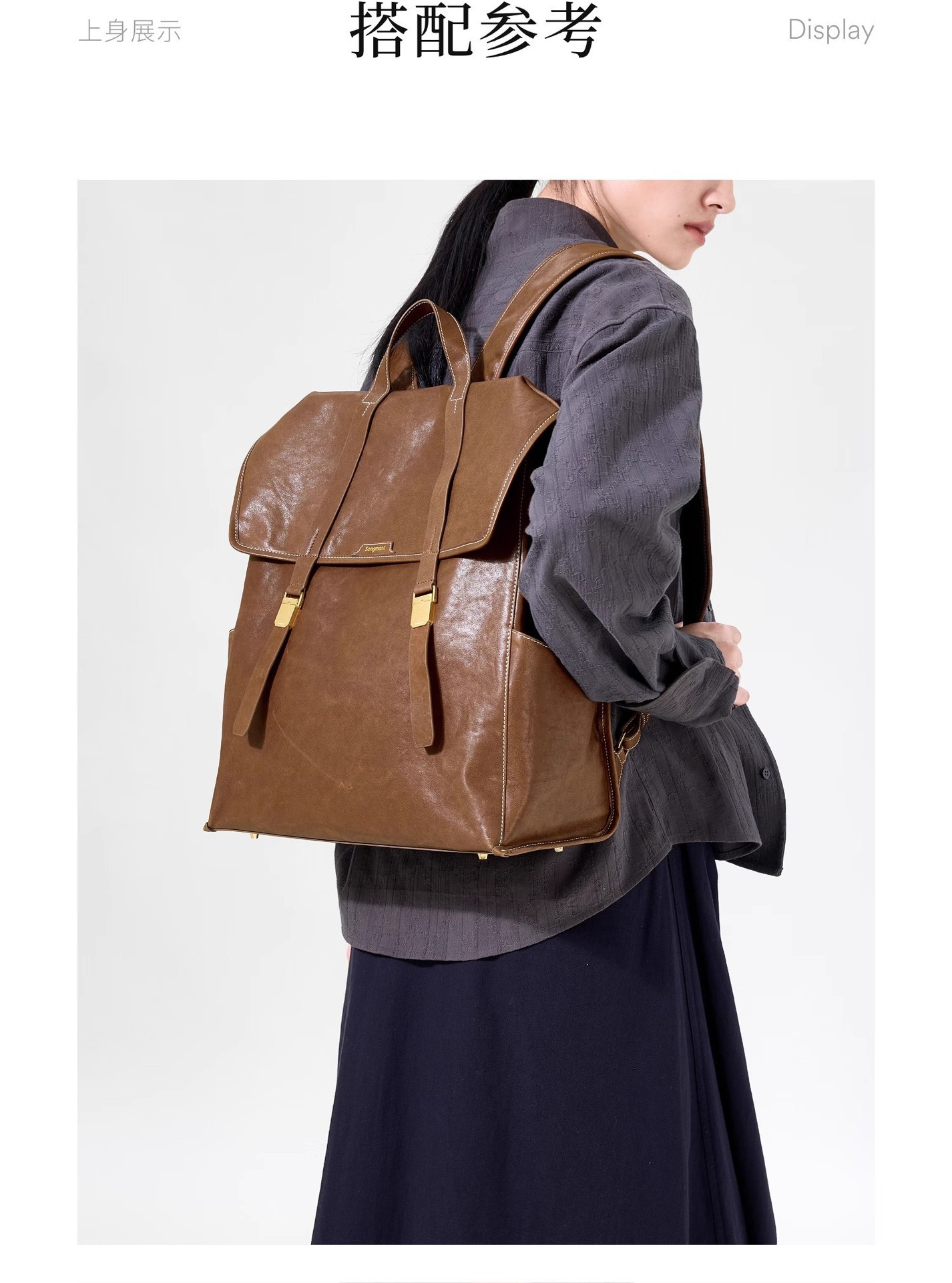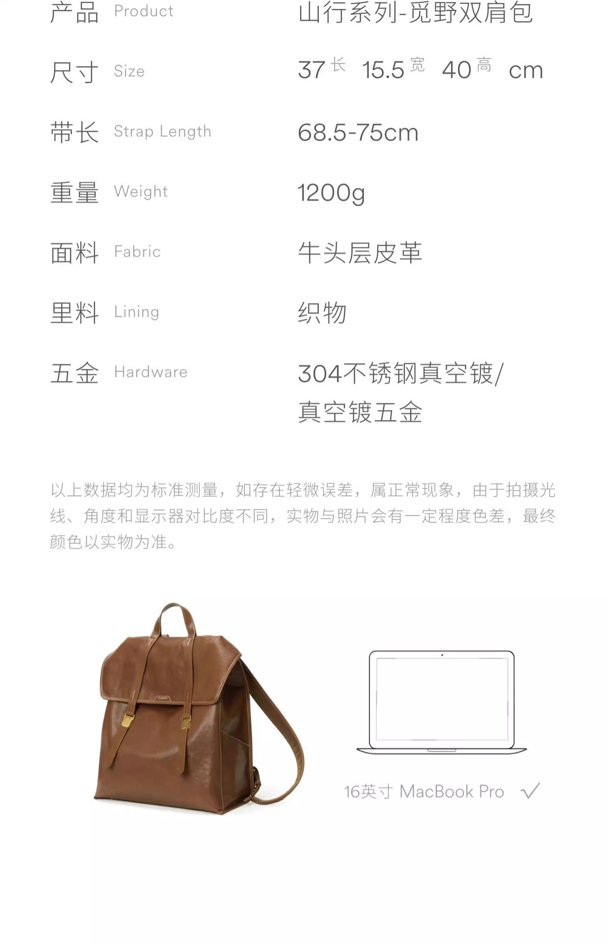 Songmont山下有松山行系列觅野大号双肩包设计师款植鞣牛皮电脑包
