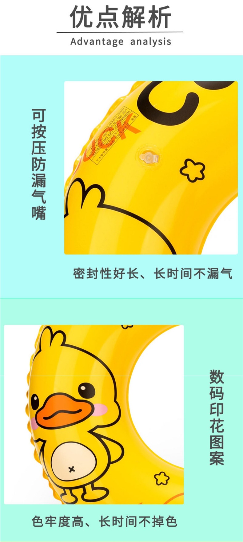 노란 오리 어린이 성인 두꺼운 수영 반지 안티 롤오버 만화 귀여운 초보자 아기 겨드랑이 수영 장비
