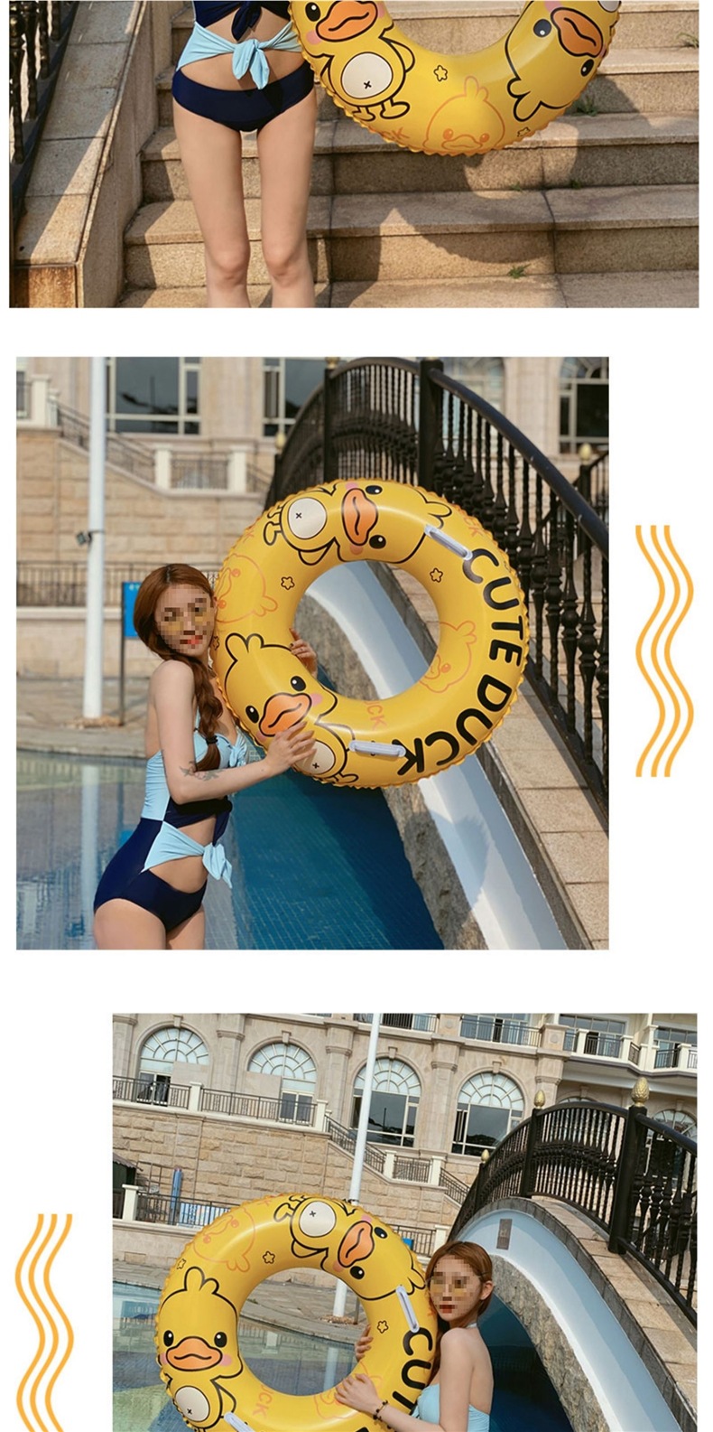 노란 오리 어린이 성인 두꺼운 수영 반지 안티 롤오버 만화 귀여운 초보자 아기 겨드랑이 수영 장비스토어 가기