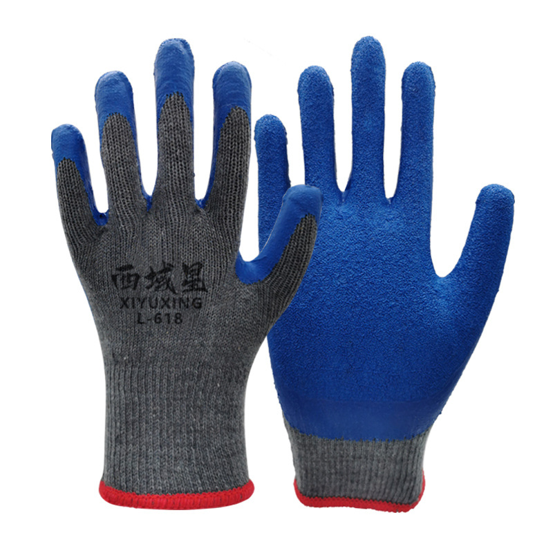 주름 장갑 10바늘 면사 회색 실 파란색 실 주름 방지 미끄럼 방지 내마모성 장갑 노동 보호 작업 담근 장갑