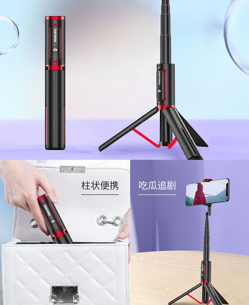 필립스 DLK5100 휴대폰 셀카봉 삼각대 유물 비디오 라이브 방송 스탠드 회전 블루투스 충전식스토어 가기