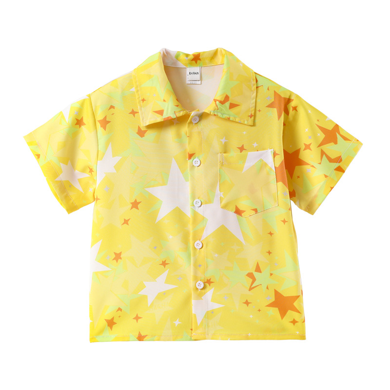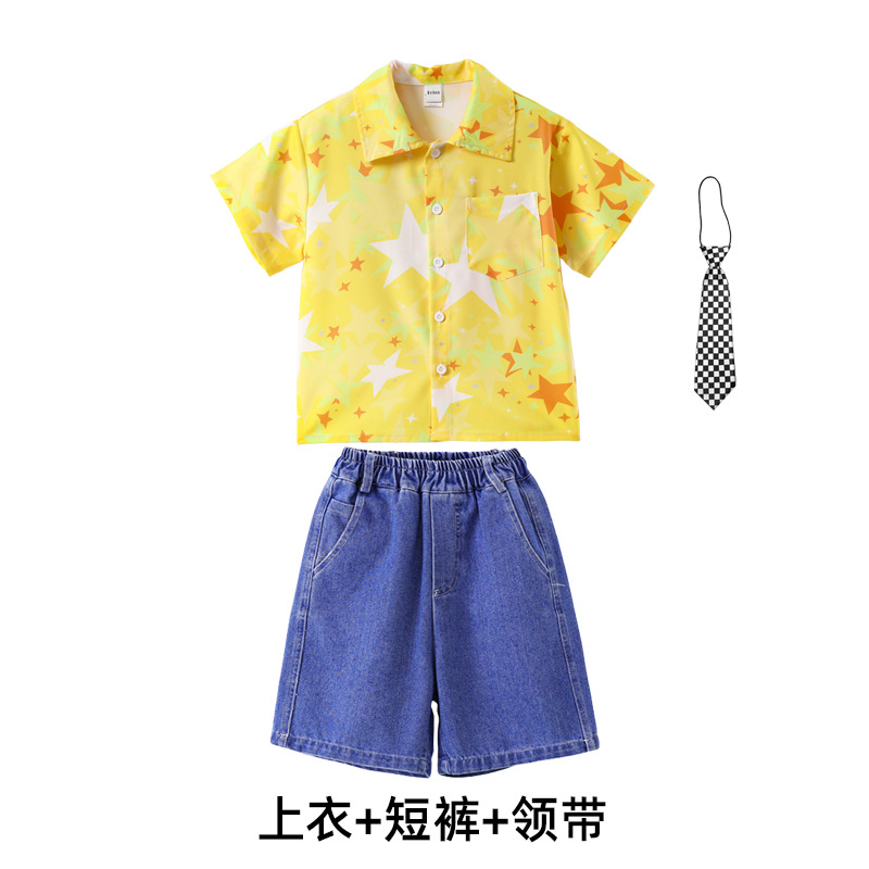 • 153B 노란색 오각별 반팔 + 141 데님 반바지 (체크무늬 넥타이 포함)