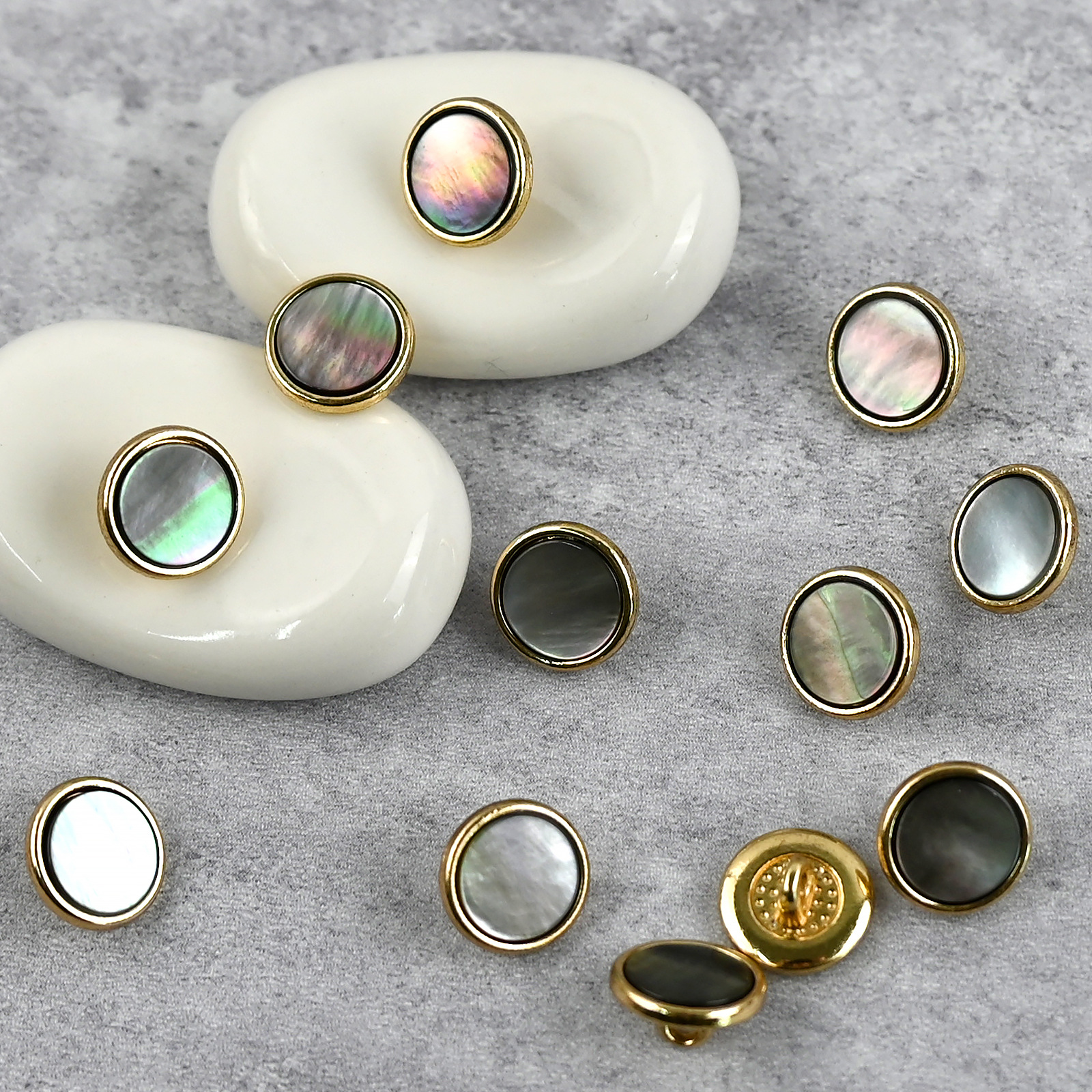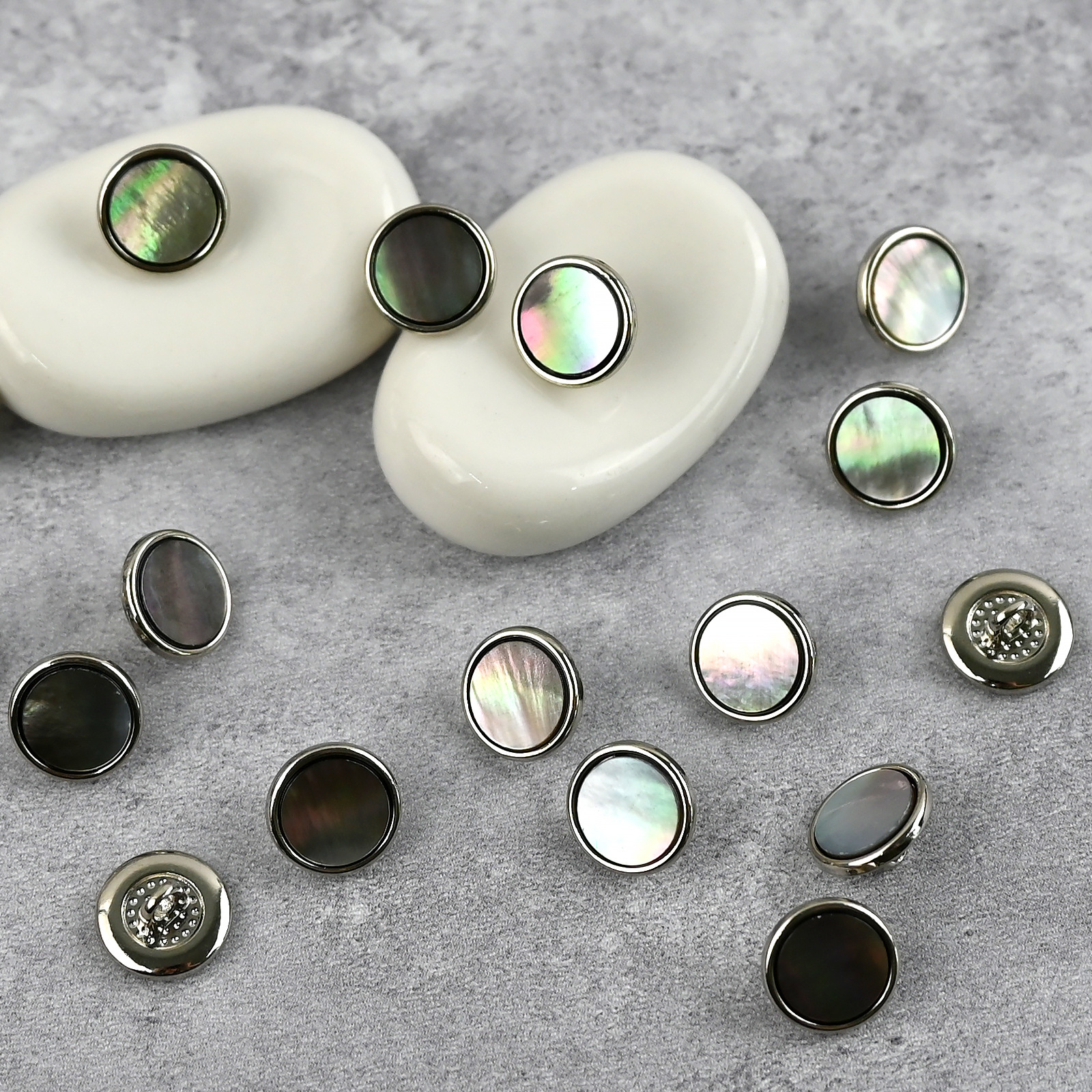 라이트 럭셔리 블랙 버터플라이 메탈 쉘 버튼 여성 셔츠 쉬폰 셔츠 실버 화이트 골드 베이스 하이 버튼