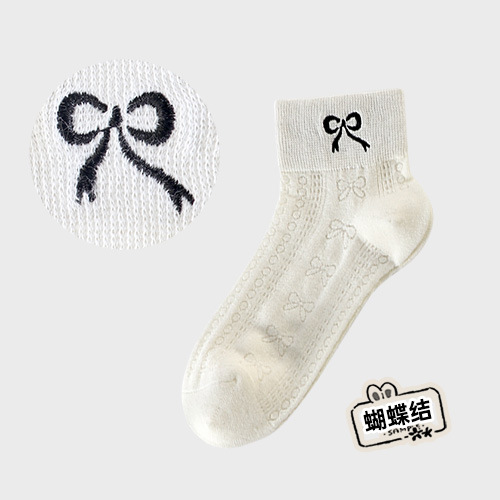 봄 새로운 양말 여성의 중공 메쉬 얇은 짧은 튜브 양말 절묘한 자수 흰색 흑백 귀여운 숙녀 양말스토어 가기