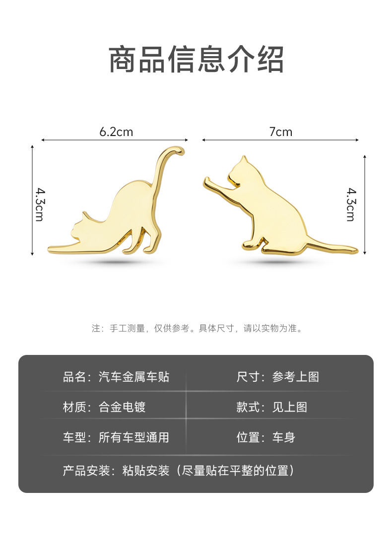 국경 간 고양이 금속 자동차 스티커 창의적이고 귀여운 3차원 방수 자외선 차단제 자수 자동차 외관 맞춤형 수정스토어 가기