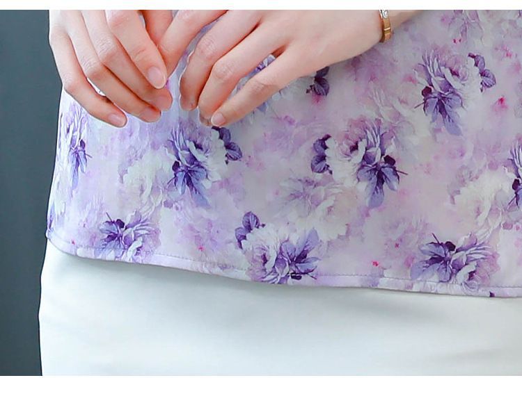 여성을 위한 프린트 디자인 5부 소매 레이스 쉬폰 셔츠 여름 신작 중년 엄마복 배를 커버하고 슬림해 보이는 상의스토어 가기