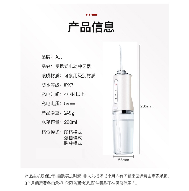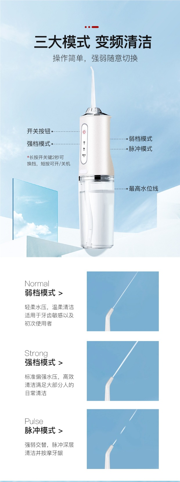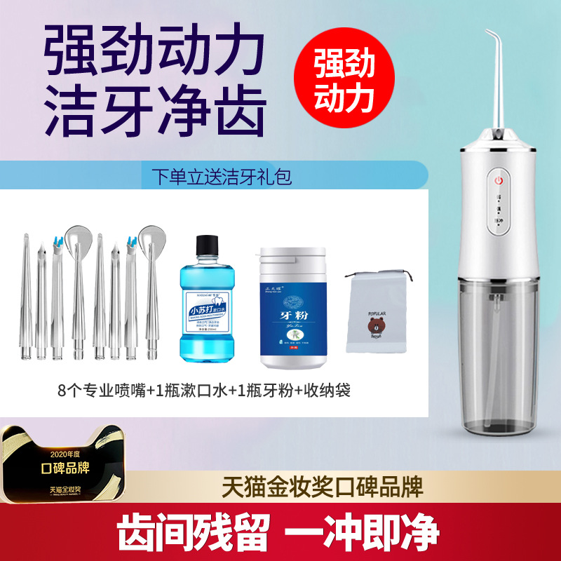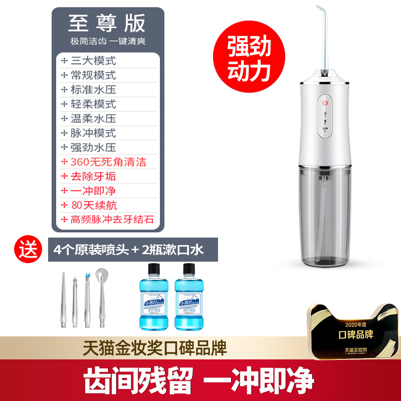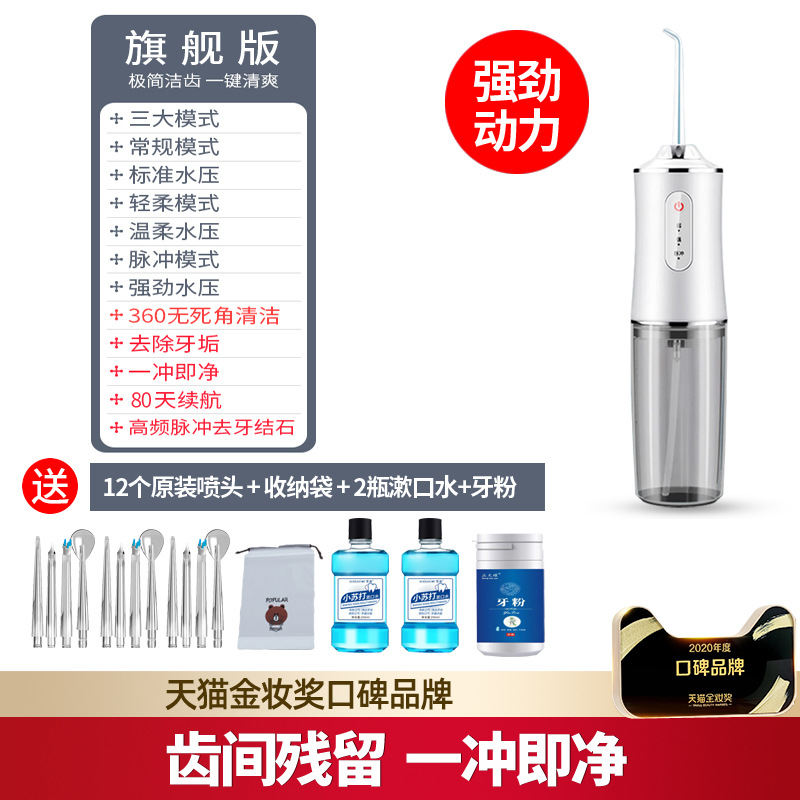 • 플래그십 버전 화이트 [3가지 모드] - 노즐 12개 + 구강청정제 2병 + 미백 치약 + 보관백