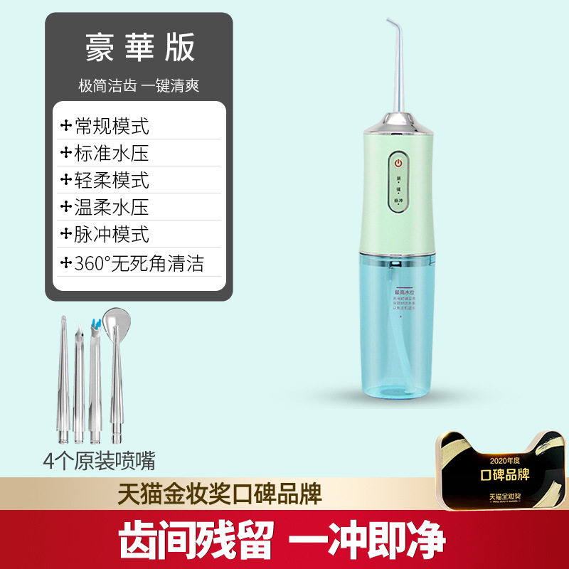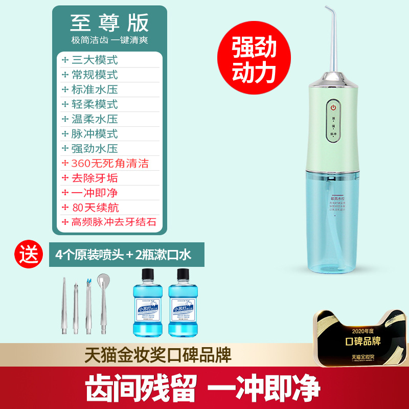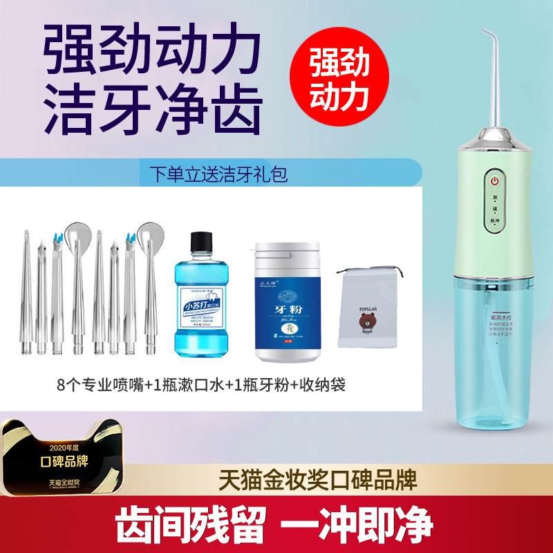 • 녹색의 눈부신 흰색 버전 [3가지 모드] - 노즐 8개 + 구강청정제 1병 + 치약 + 보관 가방
