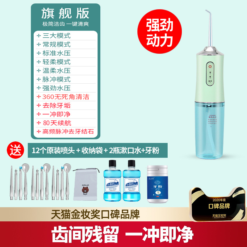 • 플래그십 그린 [3가지 모드] - 노즐 12개 + 구강청정제 2병 + 미백치약 + 보관가방