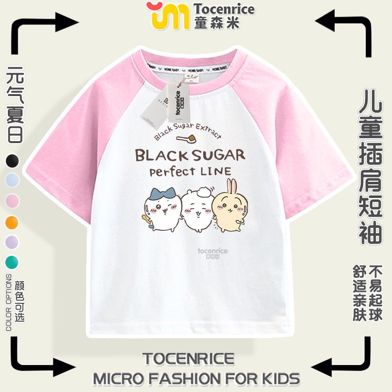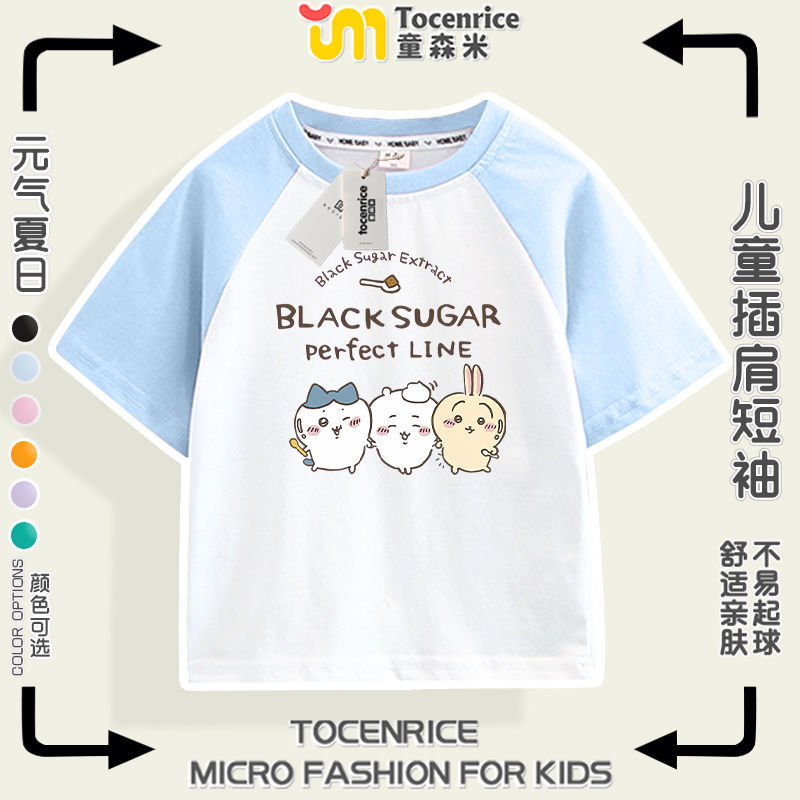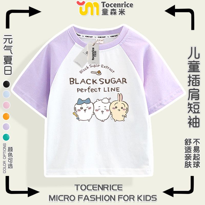 Jiyikawa 소년과 소녀 순수 코튼 티셔츠 2025 새로운 어린이 자기 조롱 곰 여름 소녀 라글란 반팔 탑스토어 가기