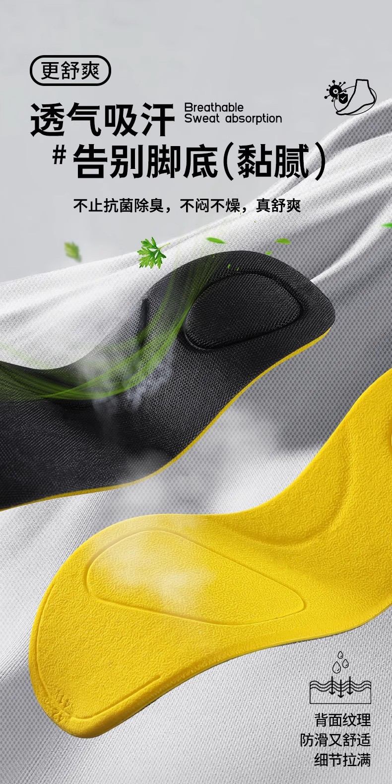 pu踩屎感鞋垫男女超软久站不累运动高弹缓震吸汗防臭透气除臭留香1RMB立即购买>