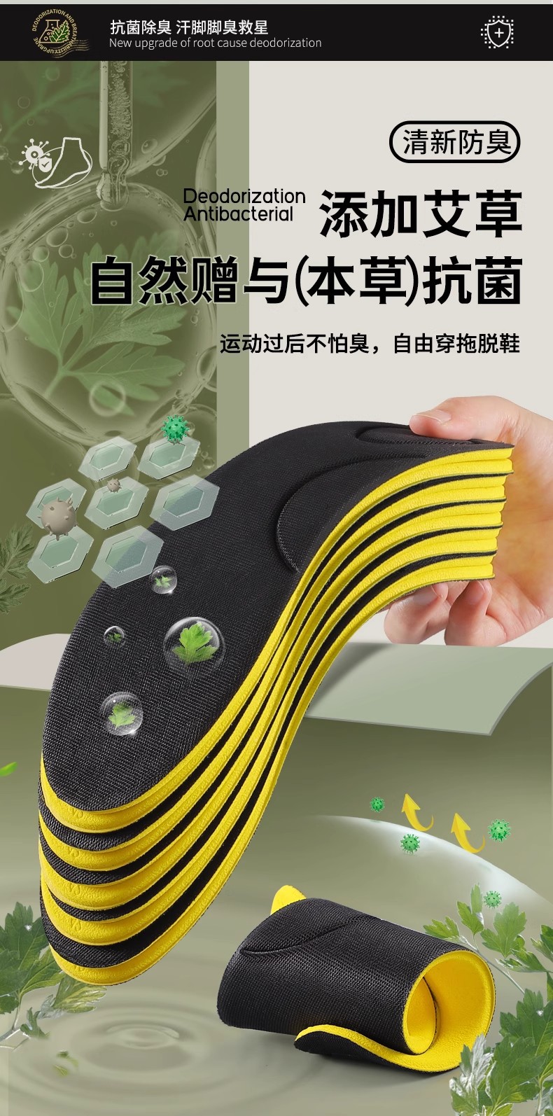 足怡康 艾草除臭鞋垫舒适防汗夏季男女清凉吸汗透气防臭软底运动0.29RMB立即购买>