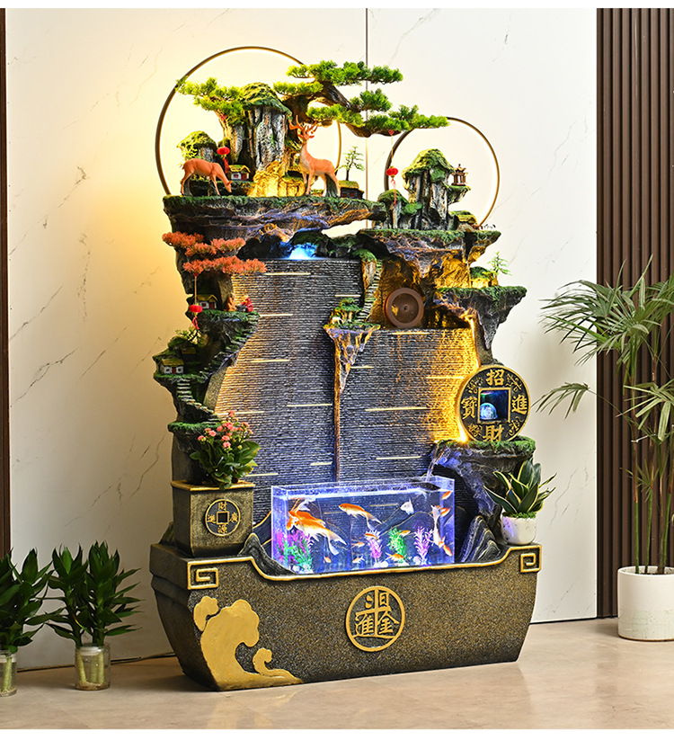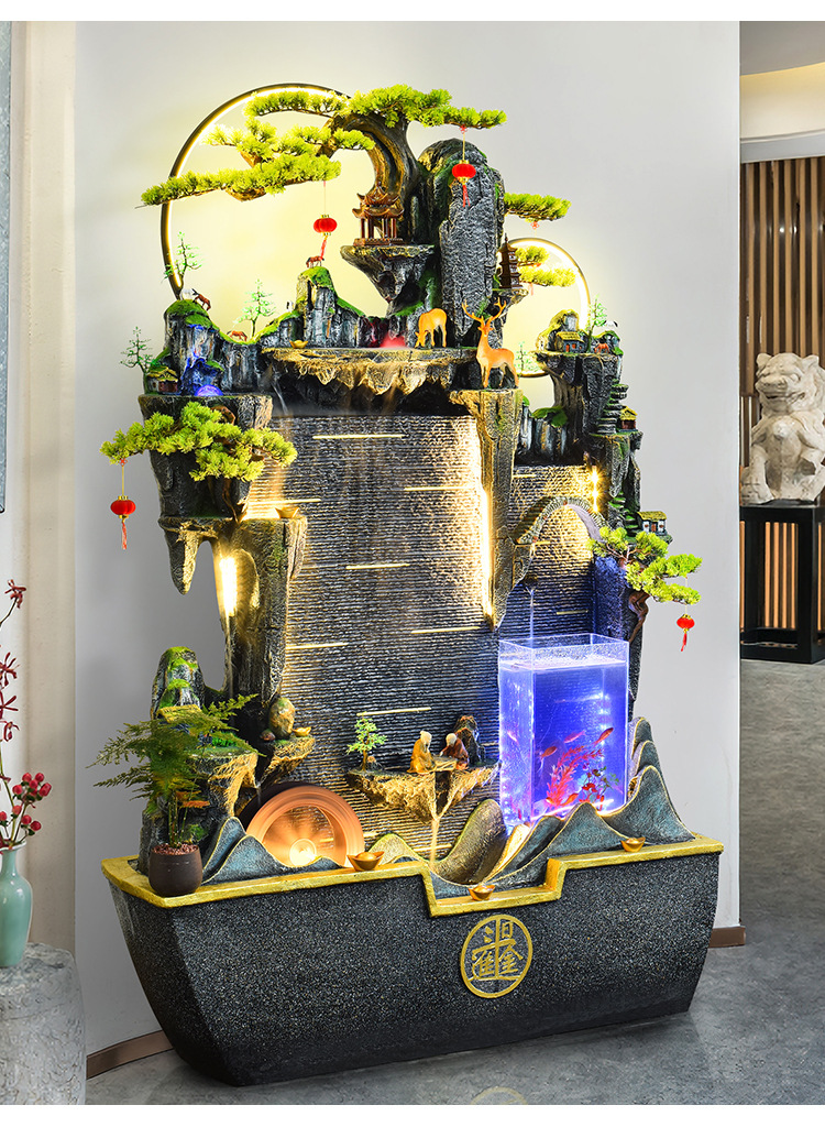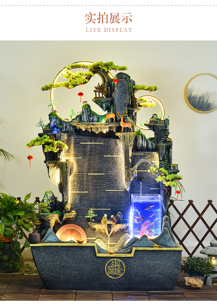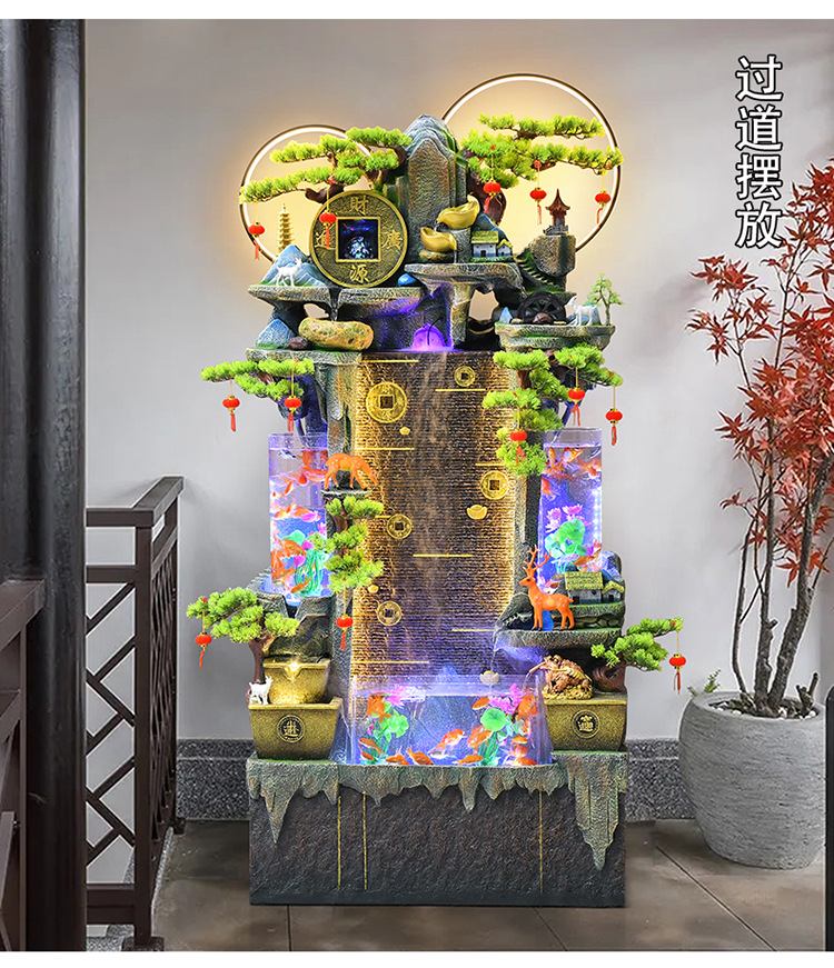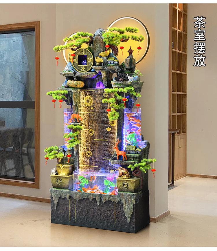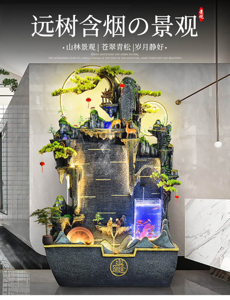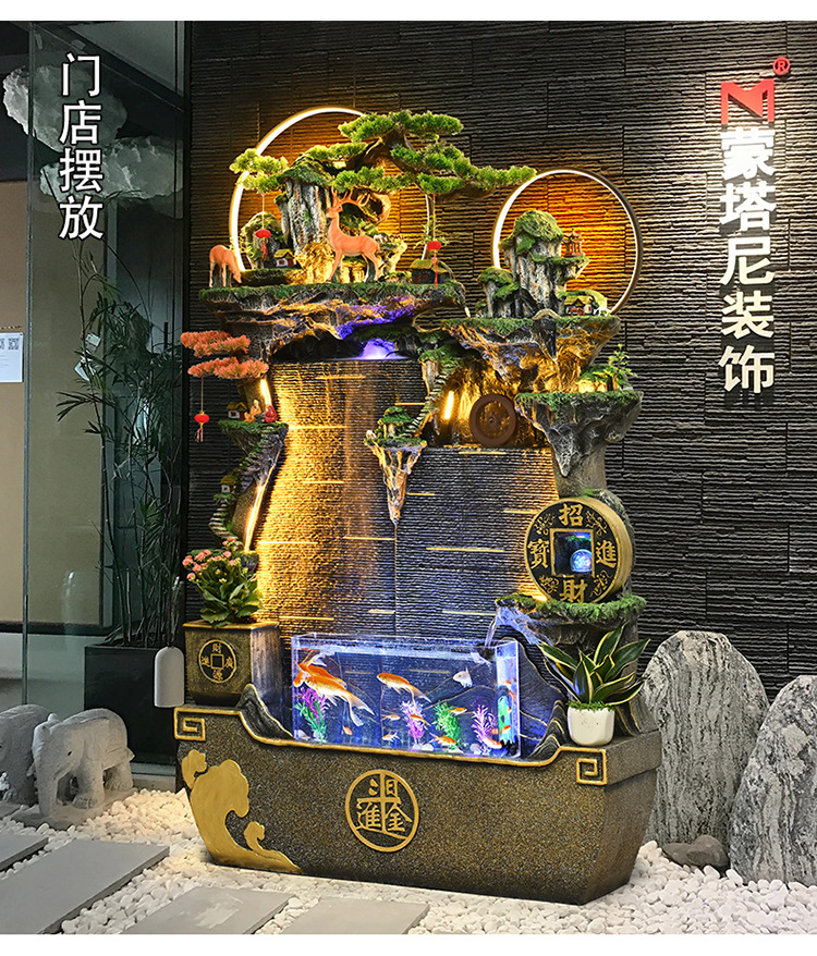 가짜 바위, 흐르는 물 분수 장식품, 순환하는 물, 사무실 물 커튼, 행운을 빌어주는 조경 장식, 발코니 집들이 및 개업스토어 가기