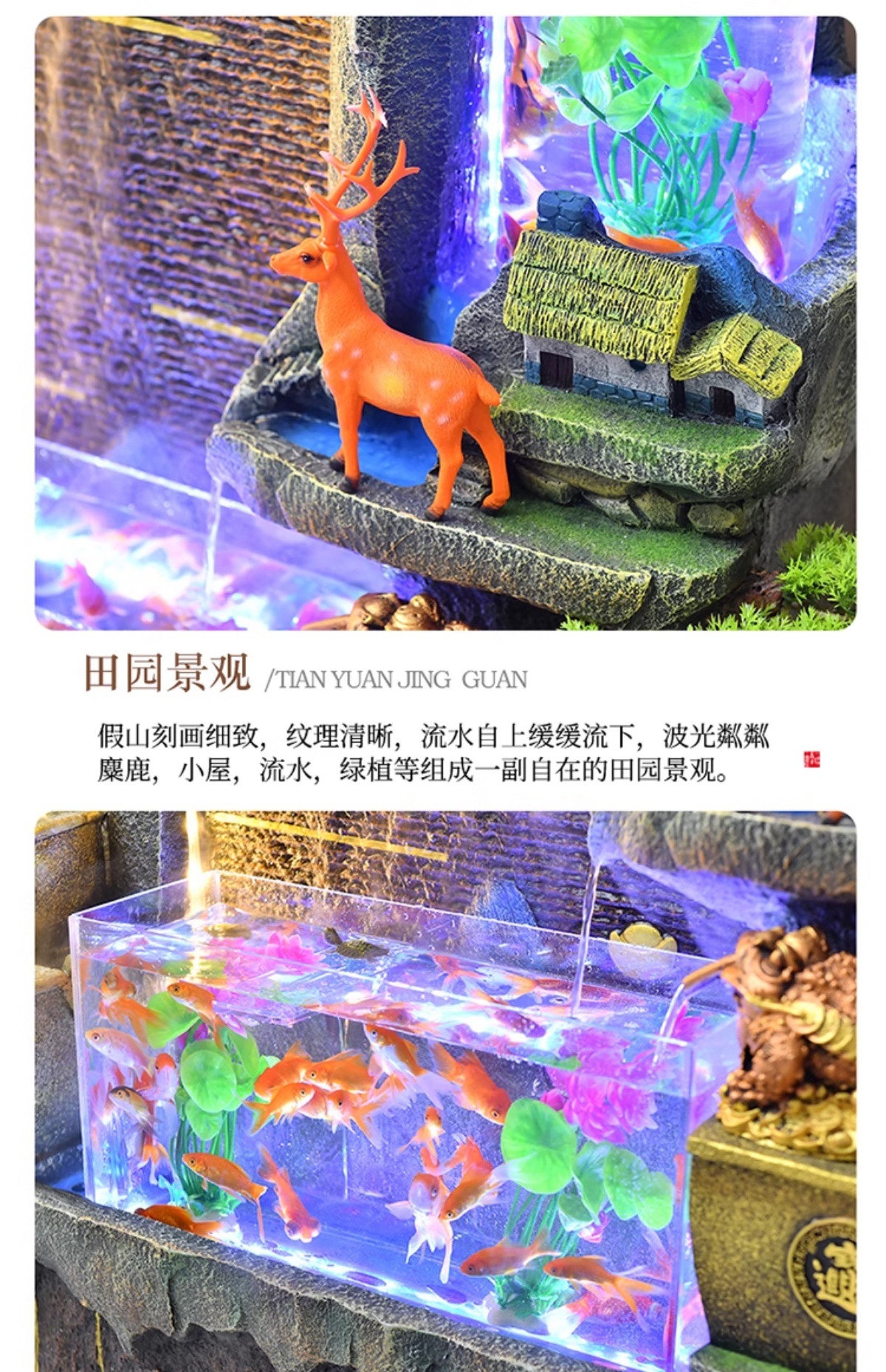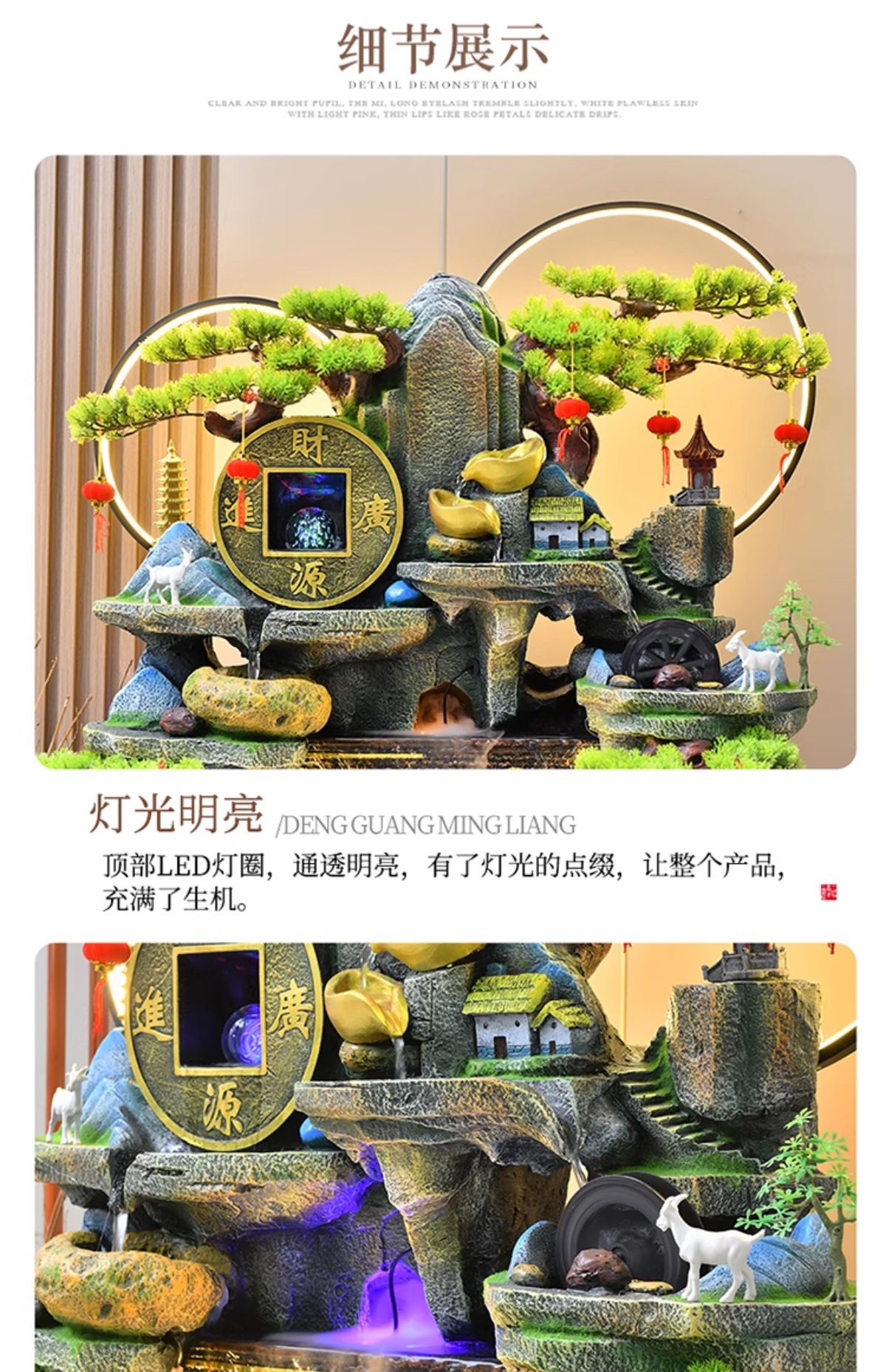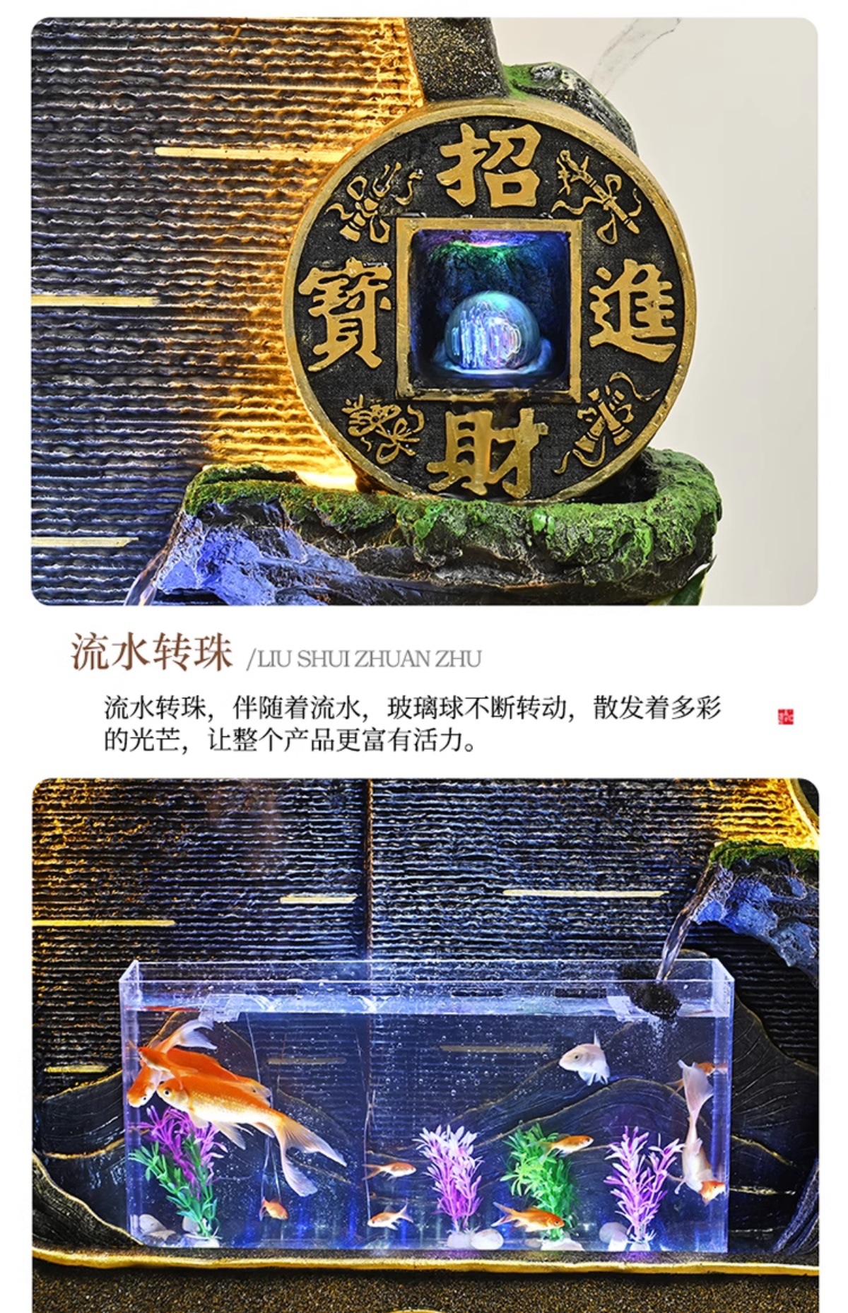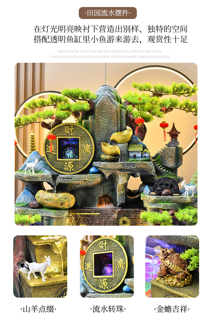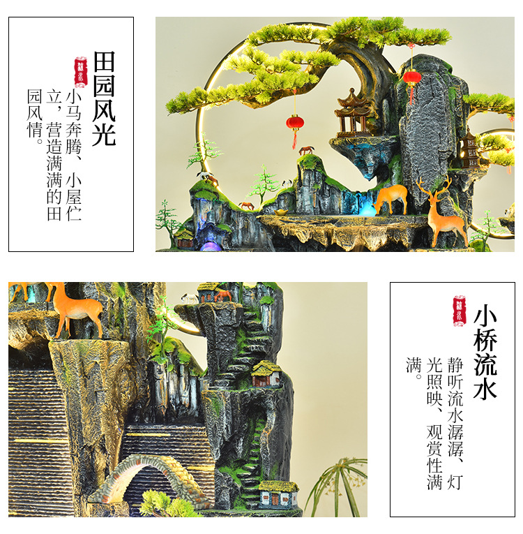 가짜 바위, 흐르는 물 분수 장식품, 순환하는 물, 사무실 물 커튼, 행운을 빌어주는 조경 장식, 발코니 집들이 및 개업스토어 가기