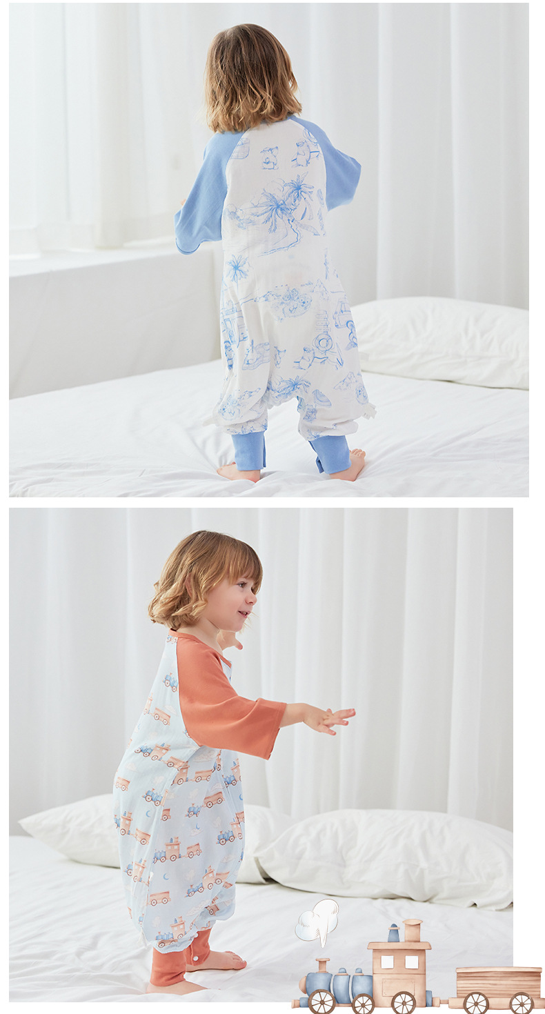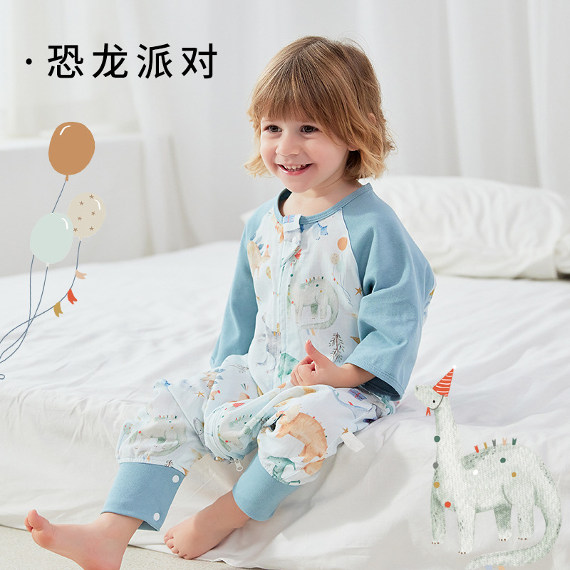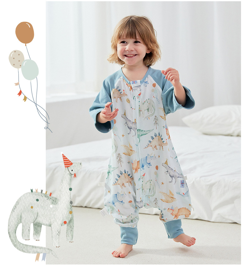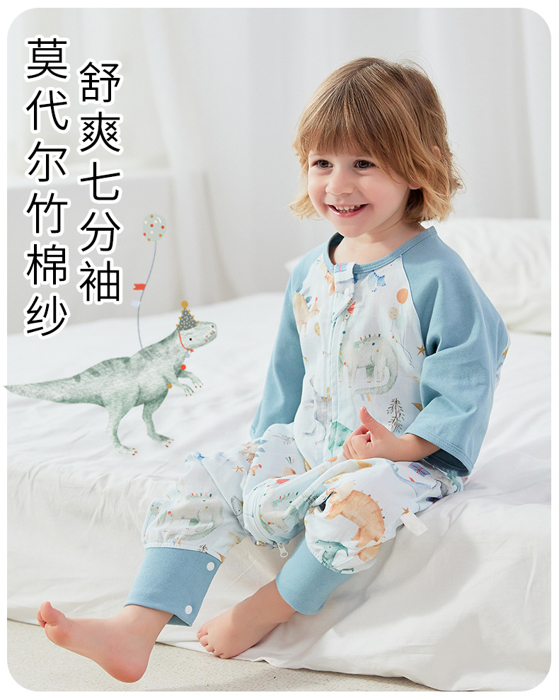 • 대나무 면 모달 7부소매 침낭 공룡 파티