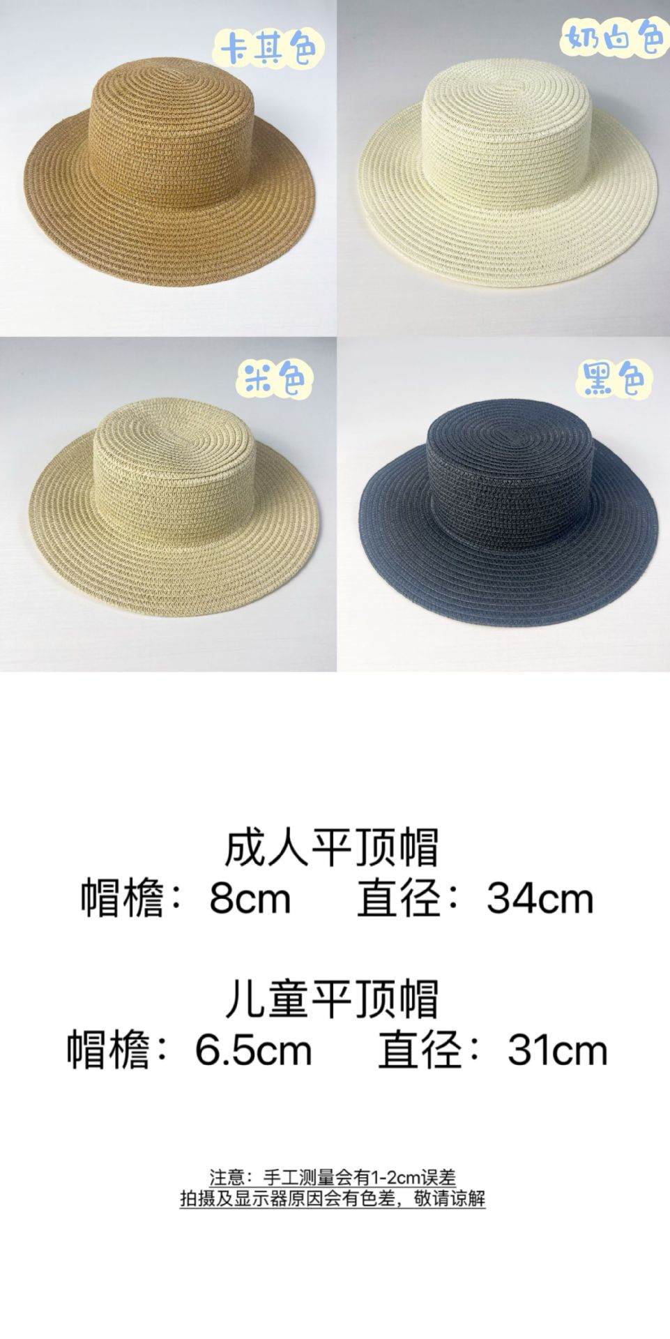 儿童平顶帽:帽围52cm左右 帽檐6.5cm左右 重量约95克
