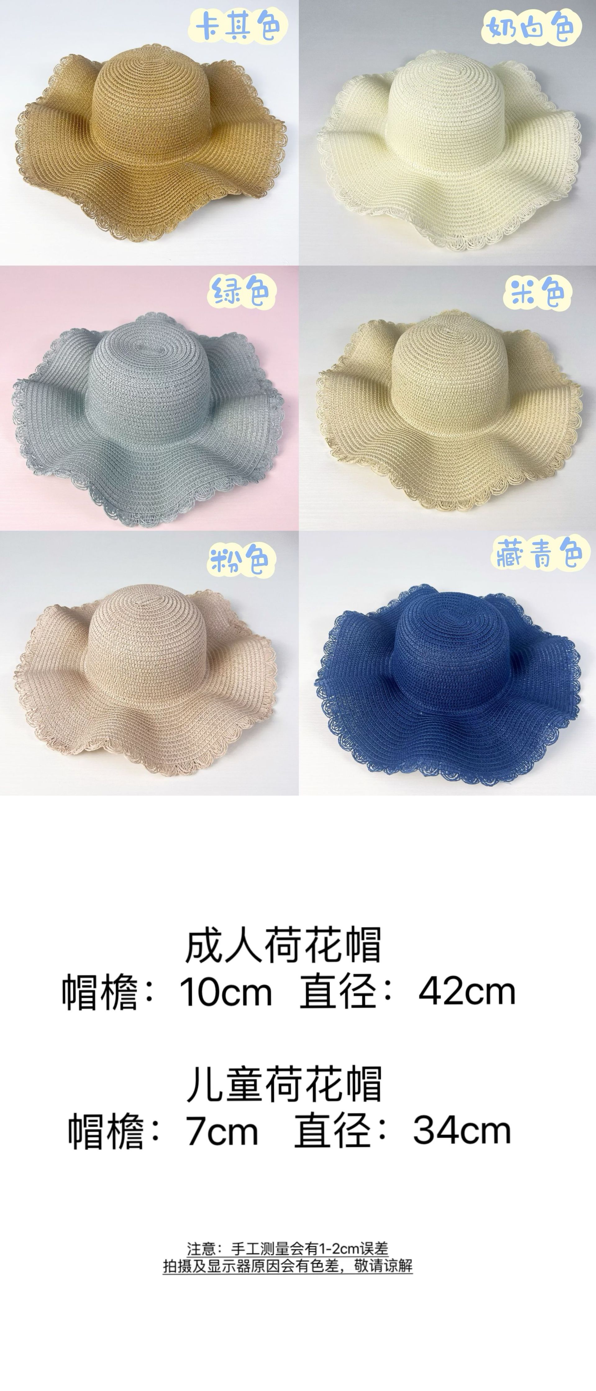 儿童荷花帽:帽围52cm左右 帽檐7cm左右 重量约95克
