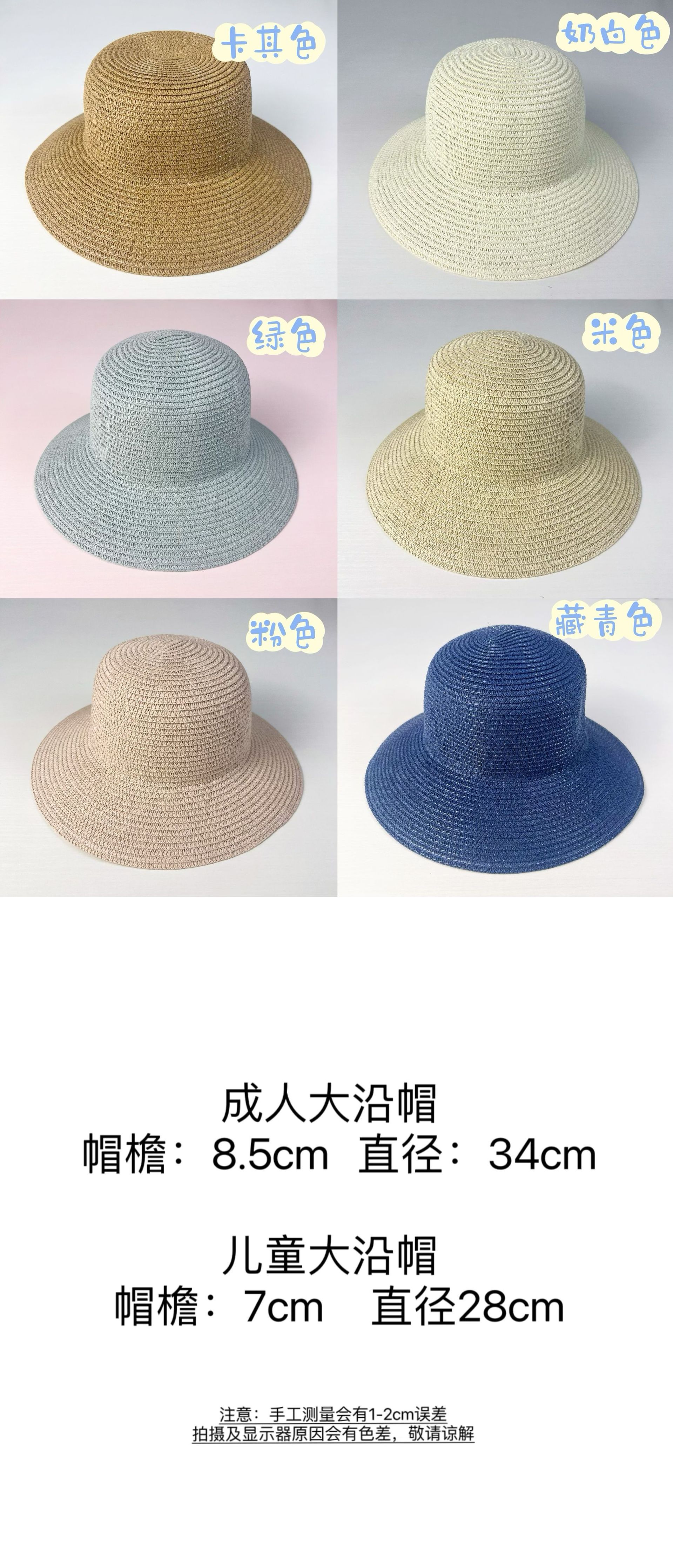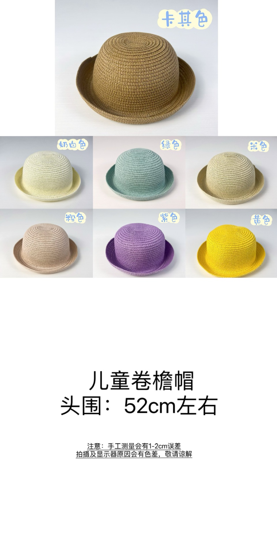 儿童大沿帽:帽围52cm左右 帽檐7cm左右 重量约105克