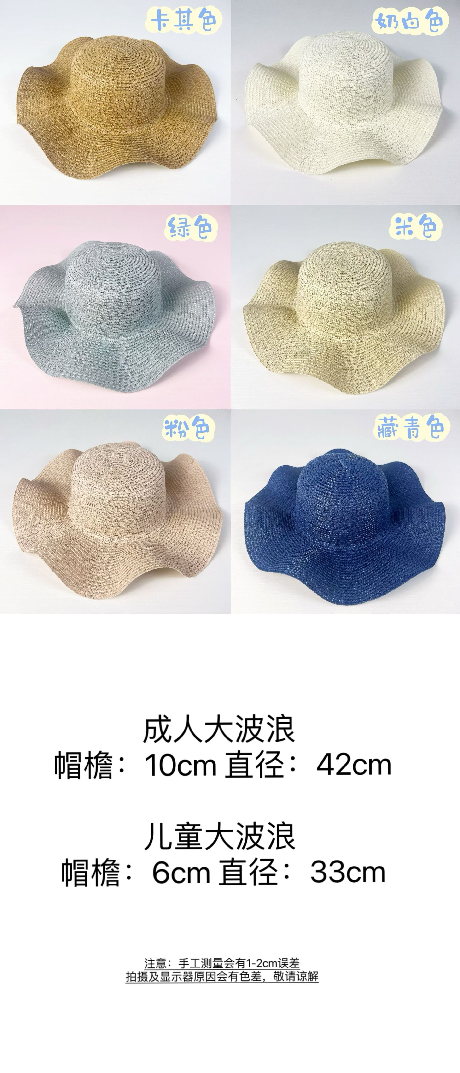 儿童波浪帽:帽围52cm左右 帽檐6.5cm左右 重量约95克