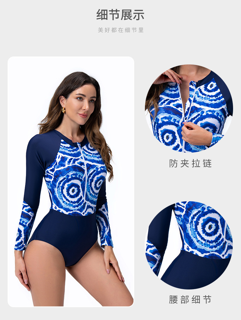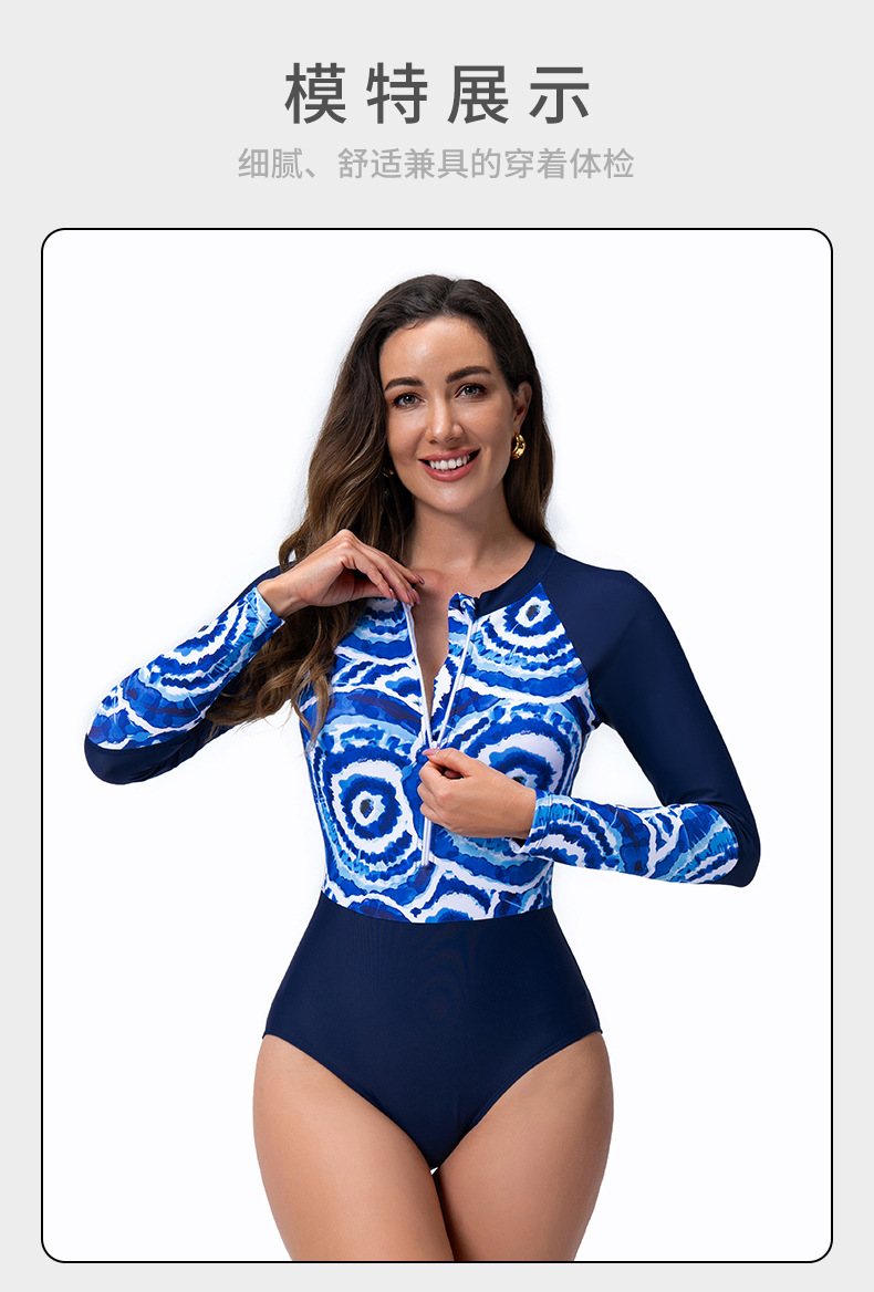 유럽과 미국의 국경 간 새로운 수영복 원피스 스포츠 여성 수영복 긴팔 지퍼 서핑 슈트 잠수복 Amazon