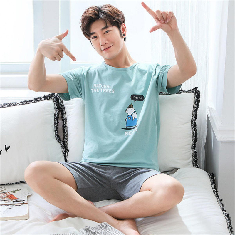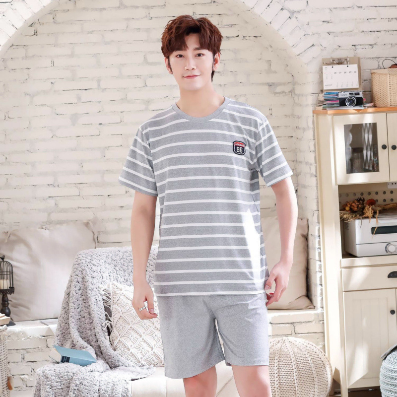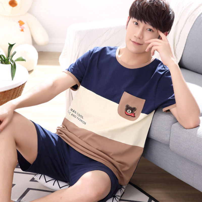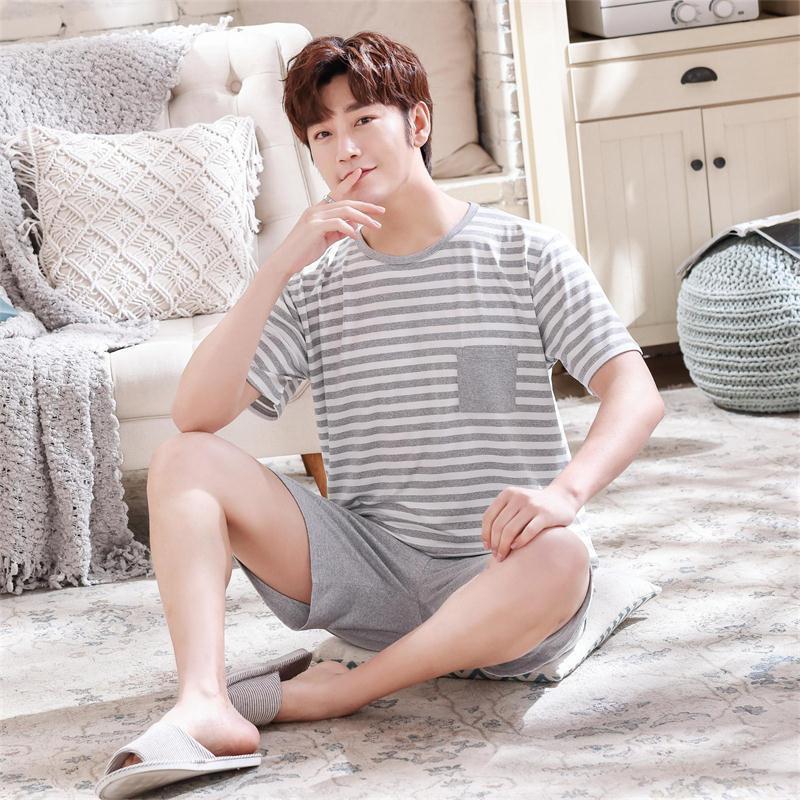 잠옷 남성면 반팔 긴팔 남성 여름 얇은 봄과 가을 착용 가능한 홈 의류 세트 독립 역 제조 업체스토어 가기