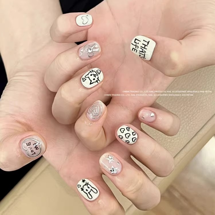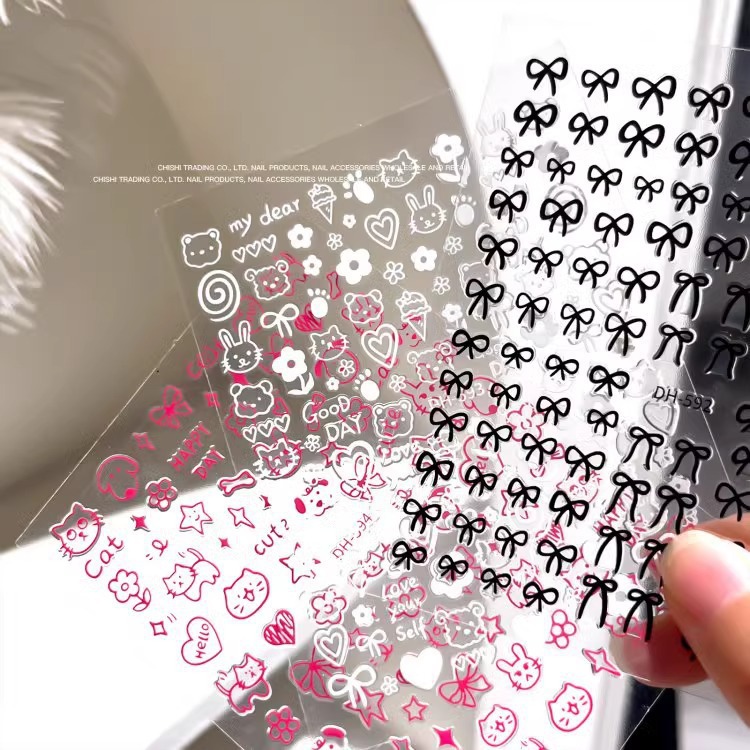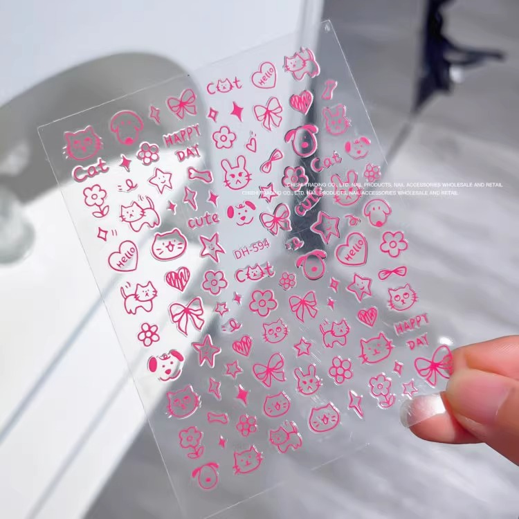 만화 낙서 네일 스티커 3D 방수 접착제 귀여운 손으로 그린 강아지와 고양이 네일 아트 스티커 쥬얼리 DH 스타일스토어 가기