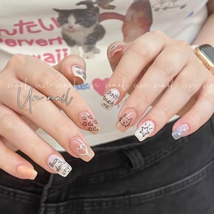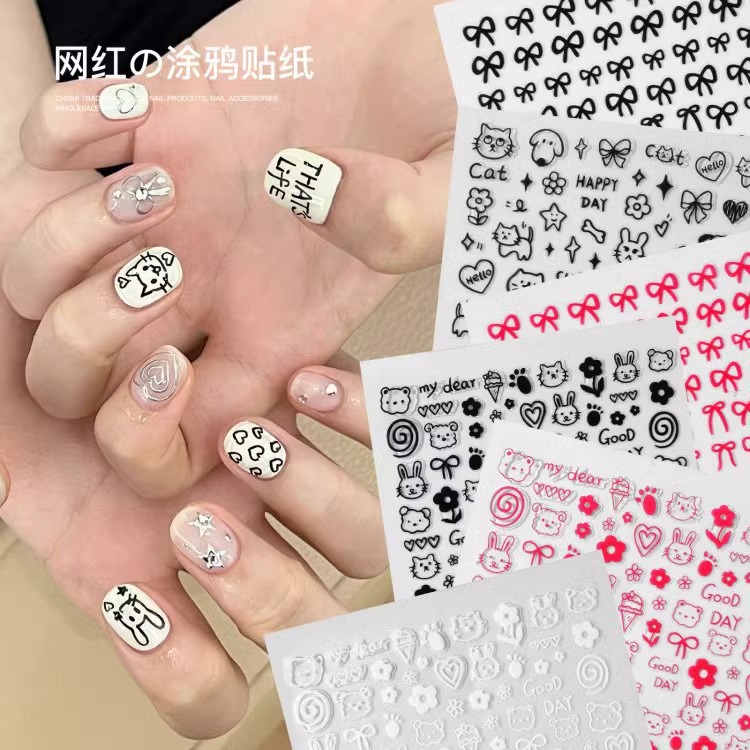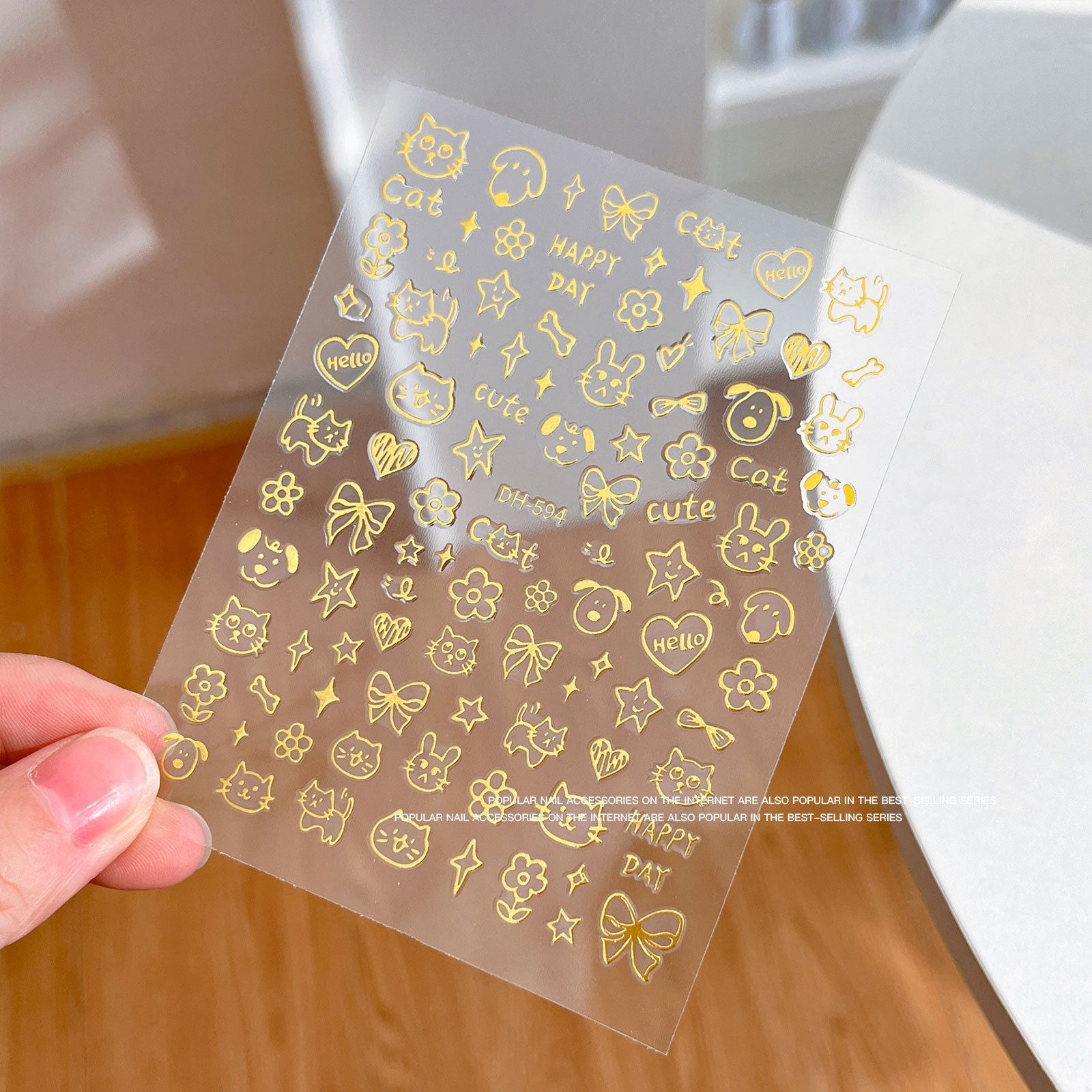 만화 낙서 네일 스티커 3D 방수 접착제 귀여운 손으로 그린 강아지와 고양이 네일 아트 스티커 쥬얼리 DH 스타일