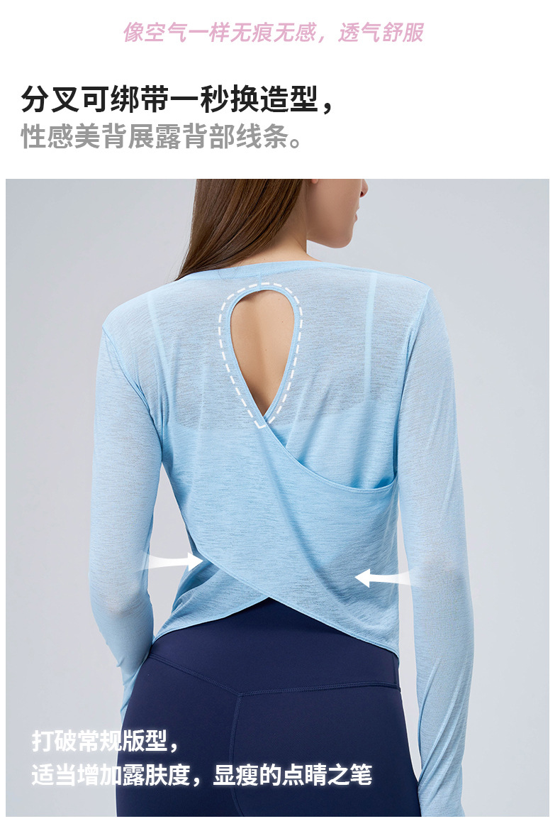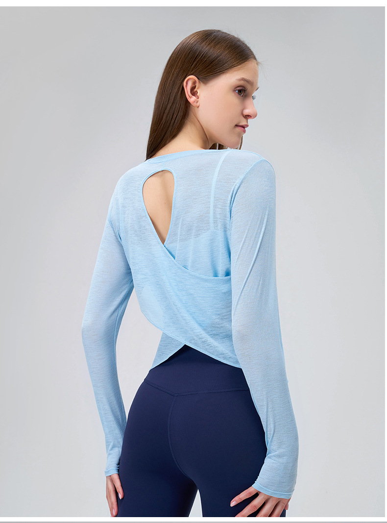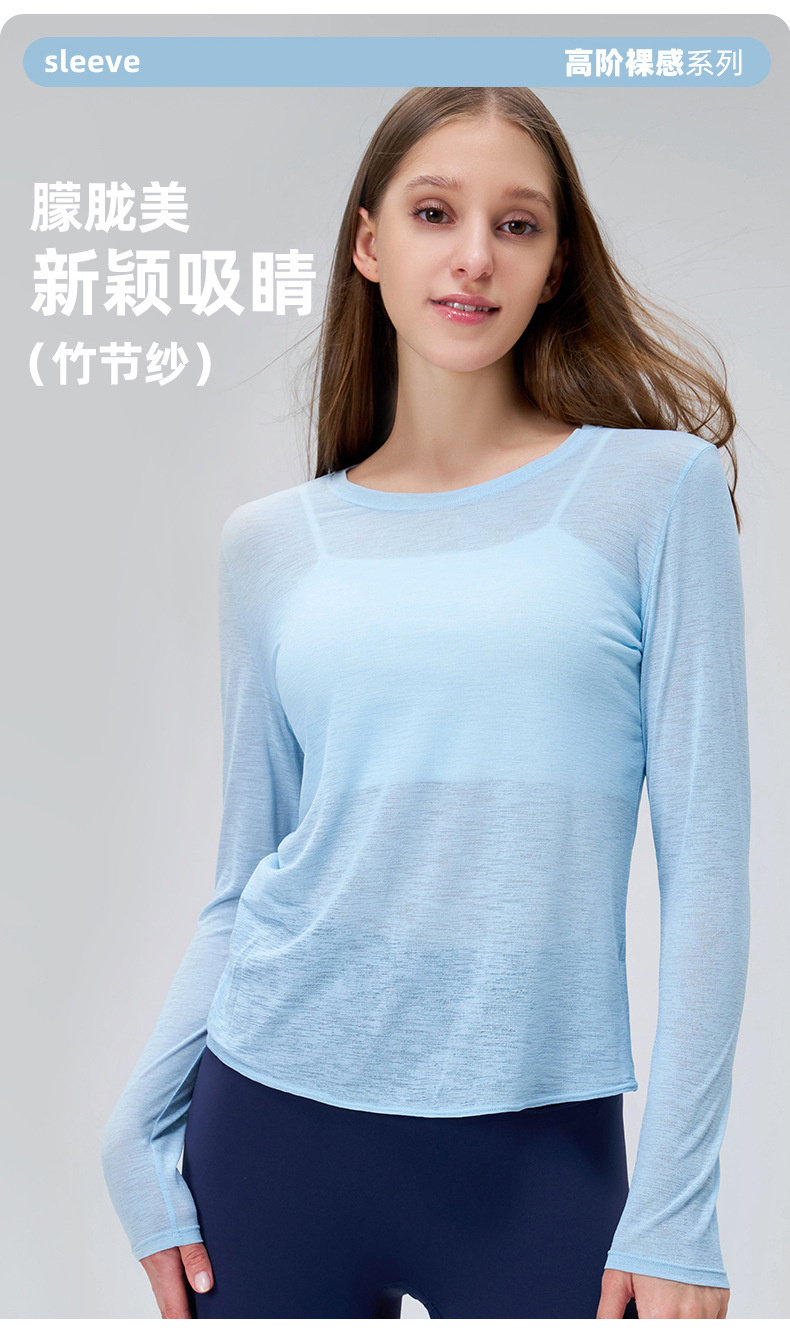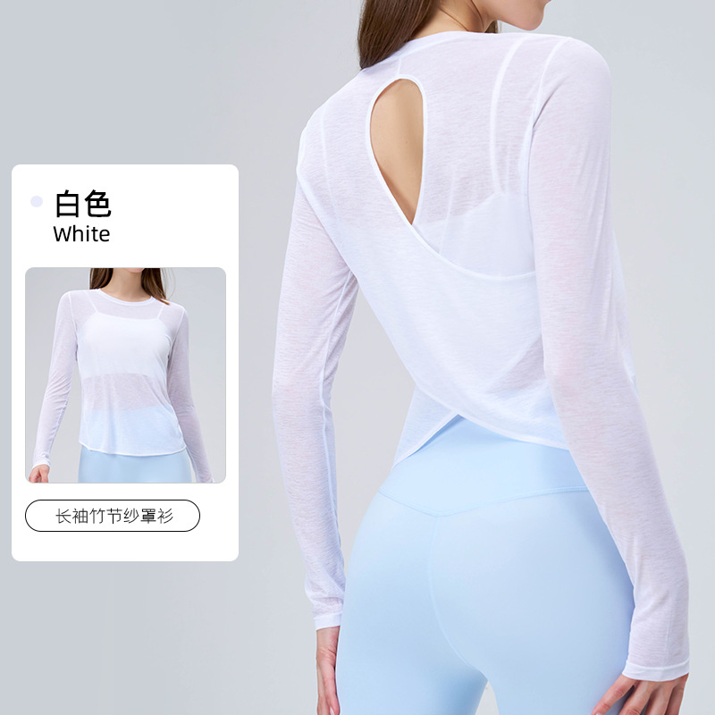 새로운 대나무 원사 느슨한 통기성 하이 엔드 요가 탑 긴팔 중공 아름다운 다시 슬림 요가 커버 업 여성을위한스토어 가기