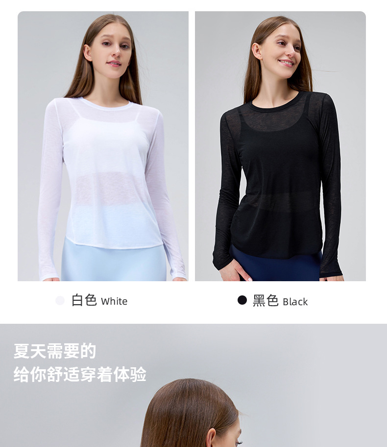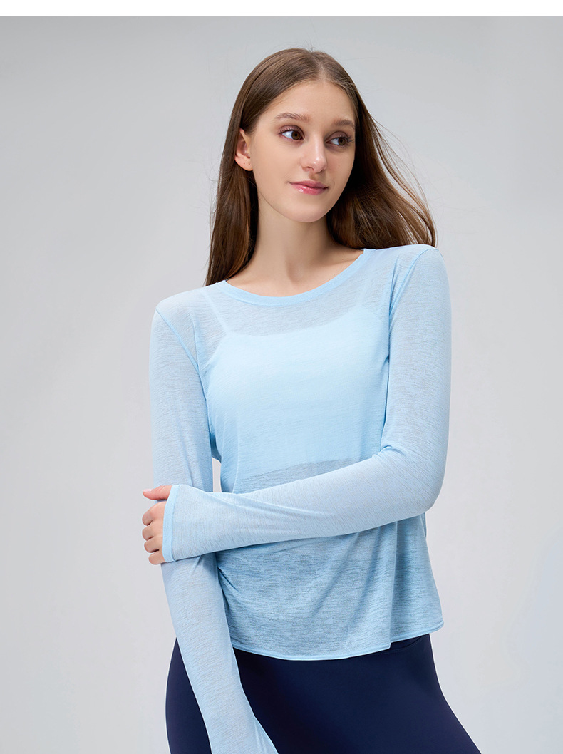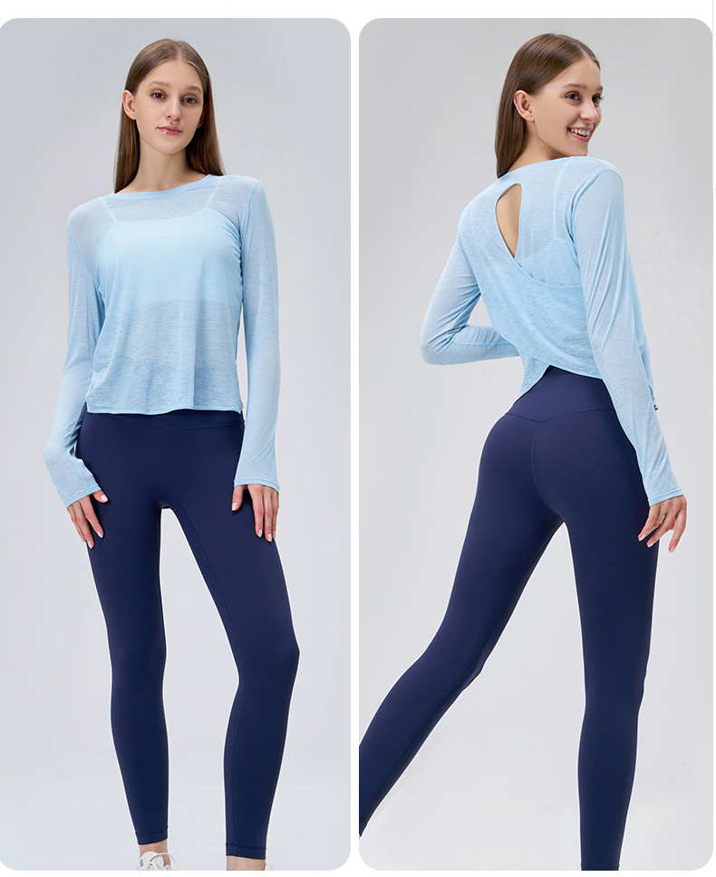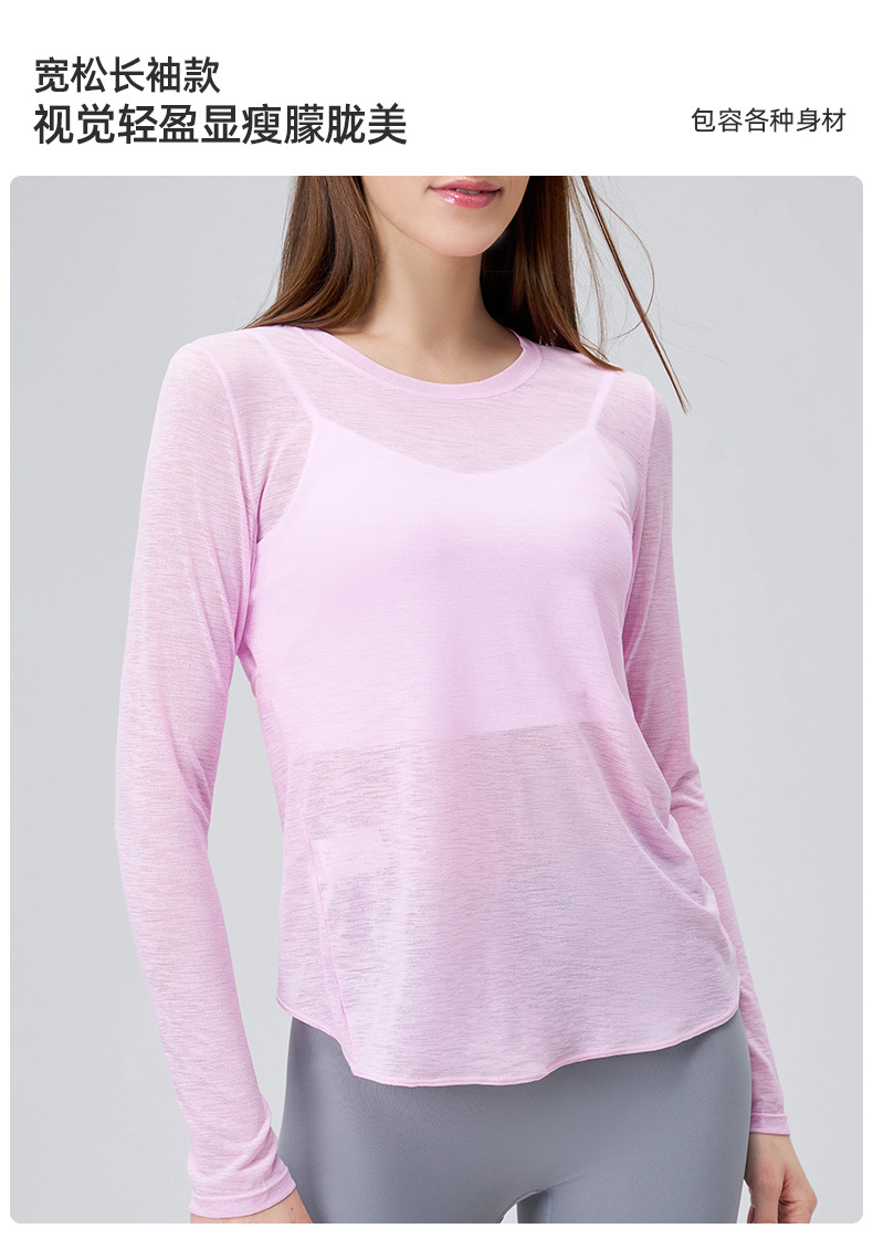 새로운 대나무 원사 느슨한 통기성 하이 엔드 요가 탑 긴팔 중공 아름다운 다시 슬림 요가 커버 업 여성을위한스토어 가기
