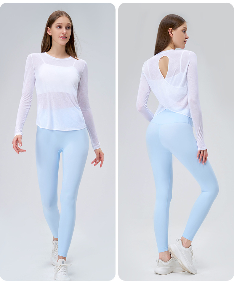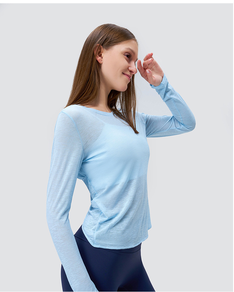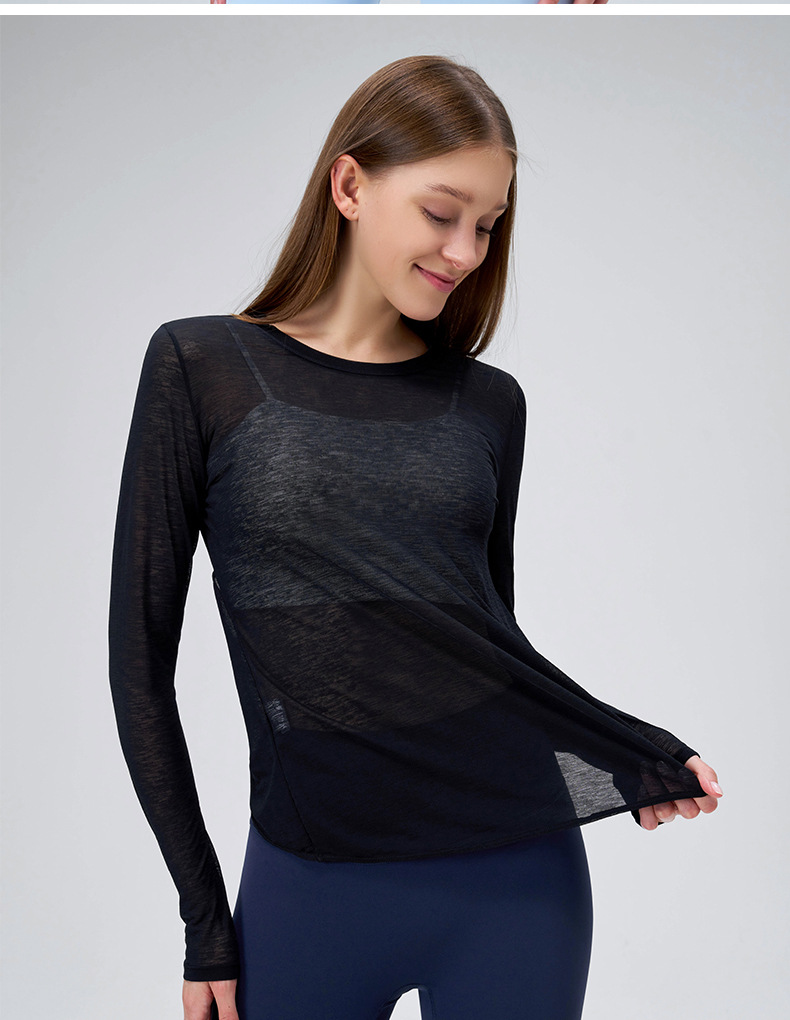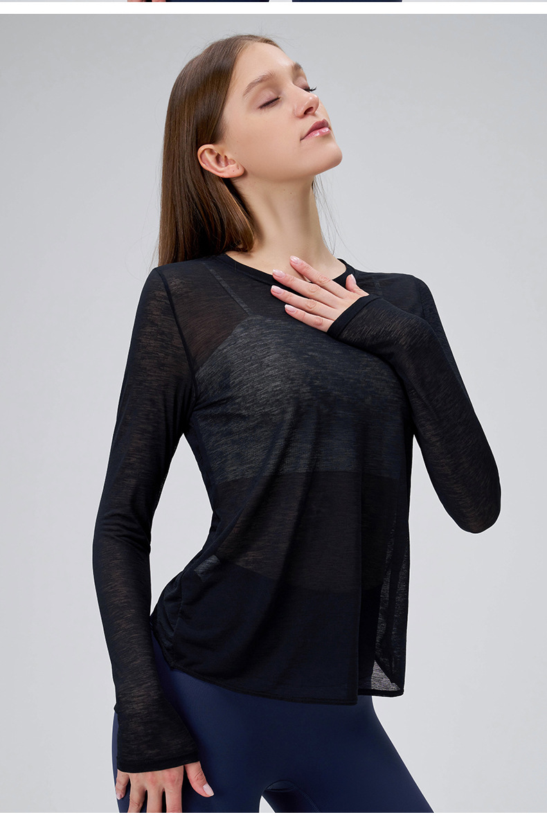 새로운 대나무 원사 느슨한 통기성 하이 엔드 요가 탑 긴팔 중공 아름다운 다시 슬림 요가 커버 업 여성을위한