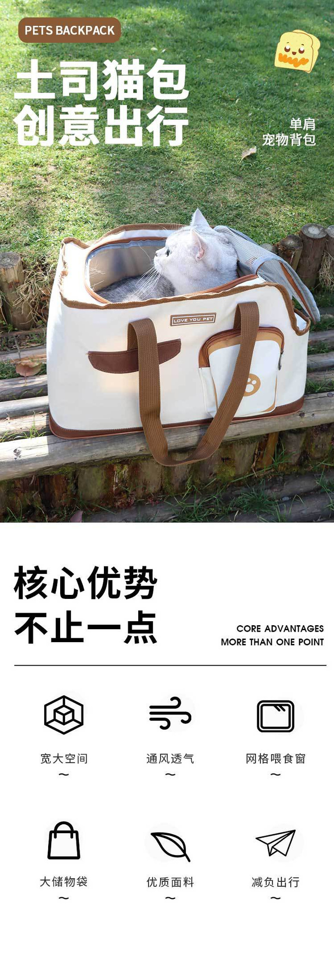 토스트 고양이 가방 통기성 봄 나들이 휴대용 애완 동물 배낭 고양이와 개 접이식 애완 동물 배낭 휴대용스토어 가기
