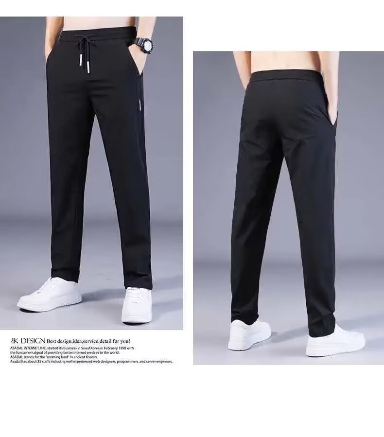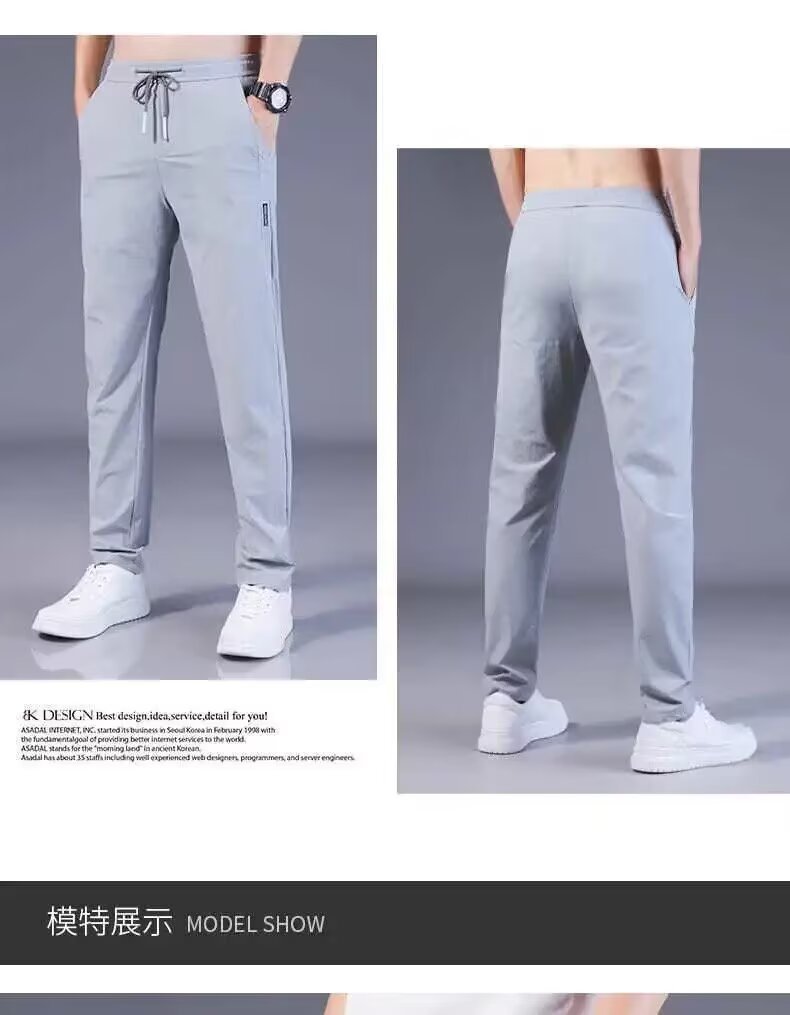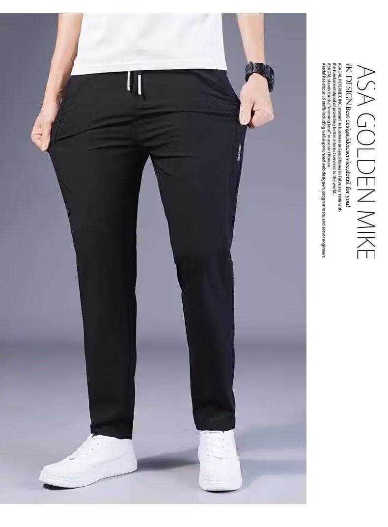 여름 얇은 남자 올 매치 캐주얼 바지 아이스 실크 느슨한 스트레이트 유행 2025 스포츠 빠른 통기성 드라이 바지스토어 가기