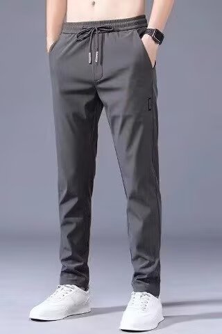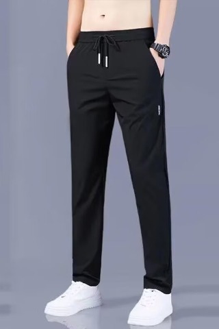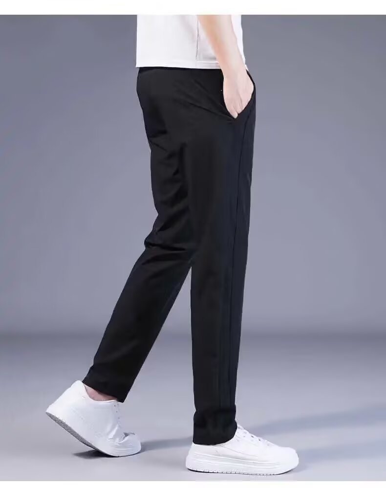여름 얇은 남자 올 매치 캐주얼 바지 아이스 실크 느슨한 스트레이트 유행 2025 스포츠 빠른 통기성 드라이 바지