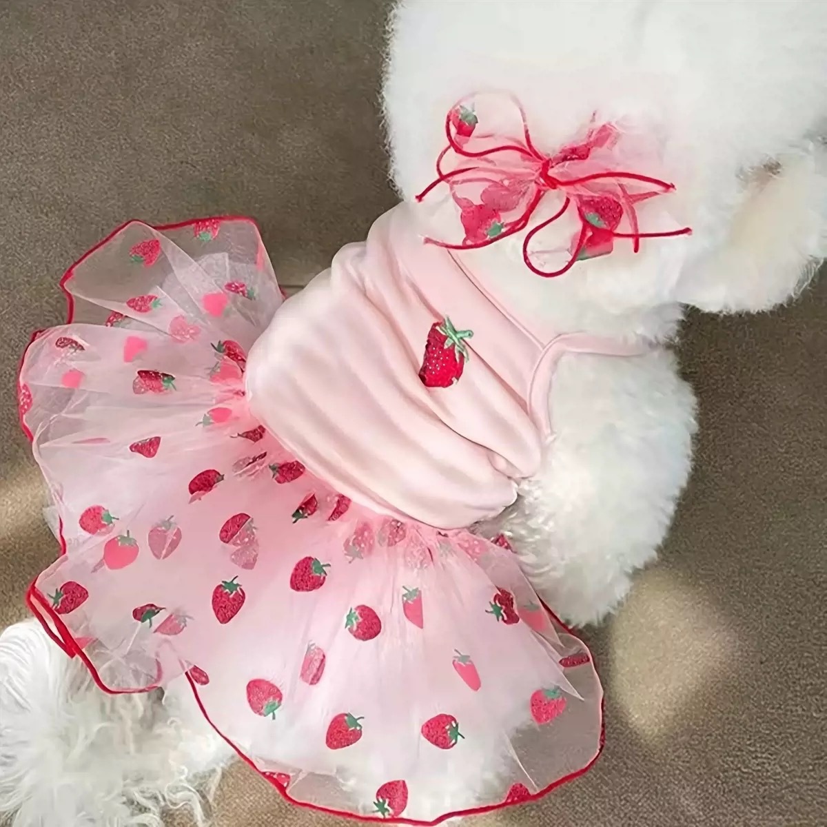 딸기 거즈 스커트 애완 동물 스커트 테디 비숑 포메라니안 작은 강아지 고양이 개 여름 옷스토어 가기