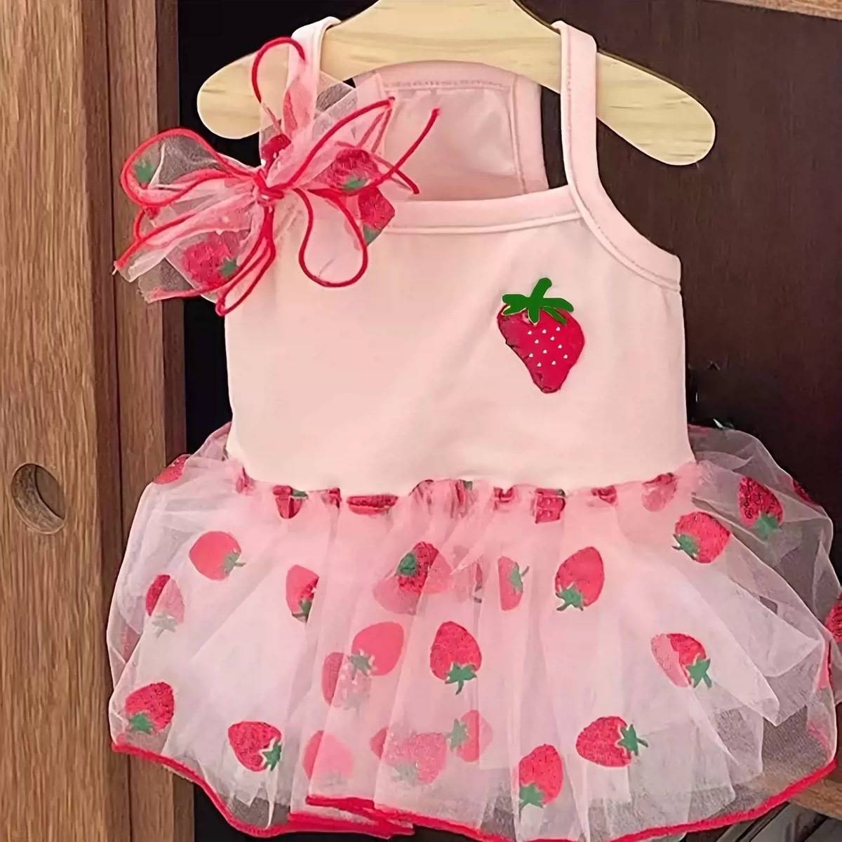 딸기 거즈 스커트 애완 동물 스커트 테디 비숑 포메라니안 작은 강아지 고양이 개 여름 옷
