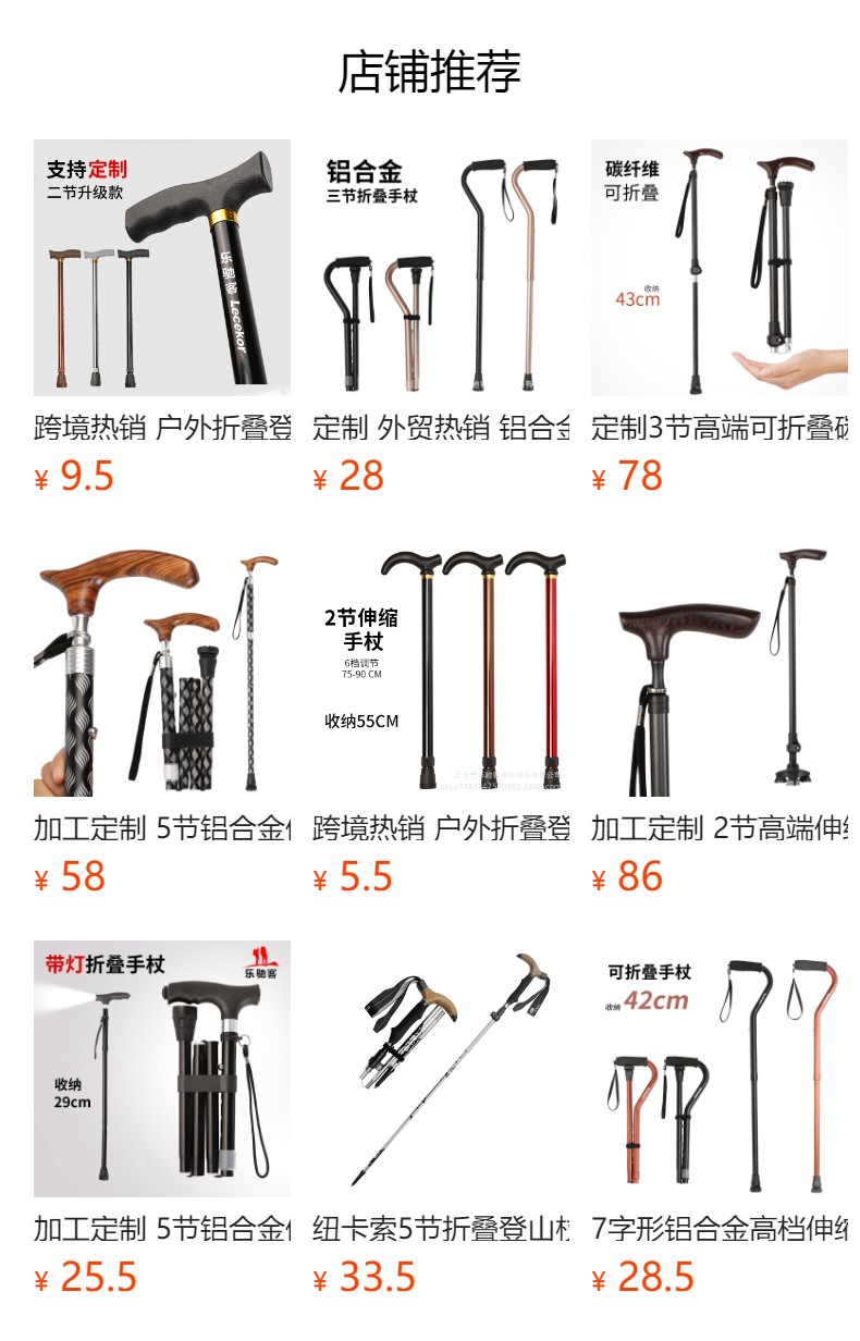 국경 간 인기 판매 야외 접이식 등산 스틱 5 섹션 텔레스코픽 노인 지팡이 여행 등산 지팡이 도매스토어 가기