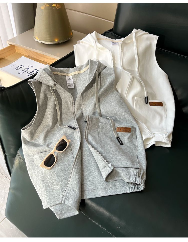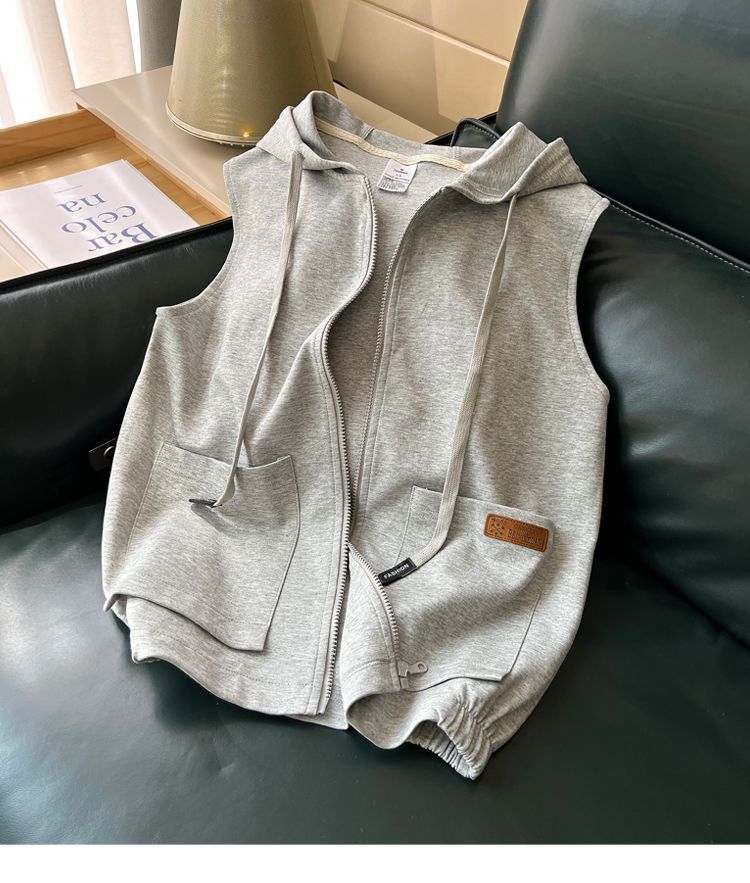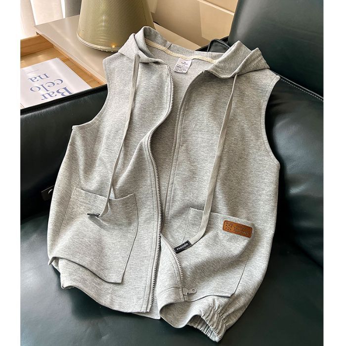 후드 스포츠 조끼 여성 봄, 가을 새로운 코트 대형 느슨한 유행 캐주얼 스포츠 탑 고급 도매스토어 가기